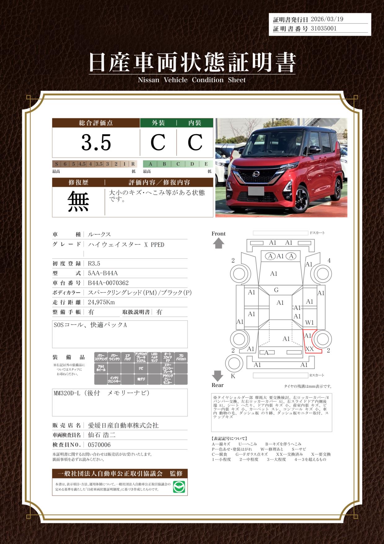 現状括弧書き内の年月まで車検有効期限が残っていますが、ご成約時に新しく車検を取り直します。なお取り直しの費用は車両価格に含まれています。