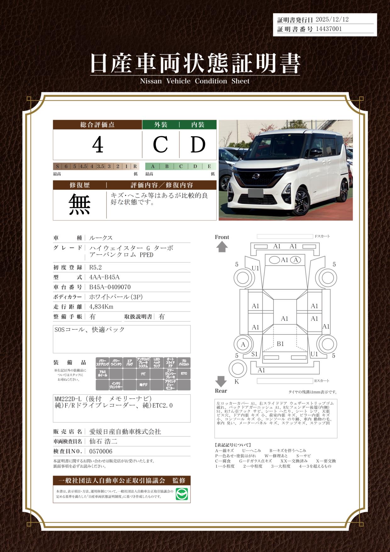 納得のクルマ選が心ゆくまでお手伝いできる「日産クオリティショップ」です。【認定中古車】 車両状態証明書を備えた全メーカー車(修復歴車以外)が対象。安心中古車選びの目印です。