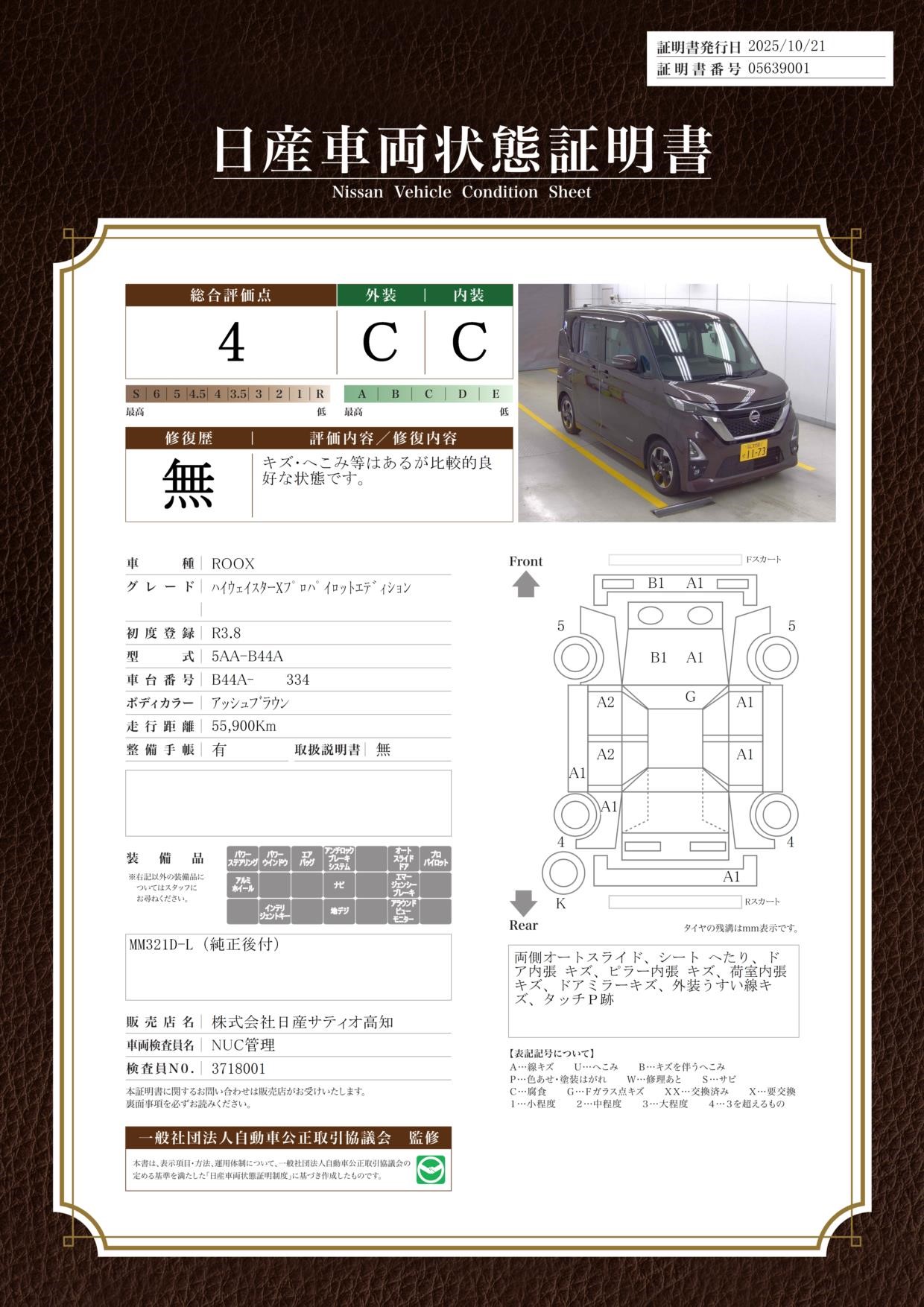 現状括弧書き内の年月まで車検有効期限が残っていますが、ご成約時に新しく車検を取り直します。なお取り直しの費用は車両価格に含まれています。
