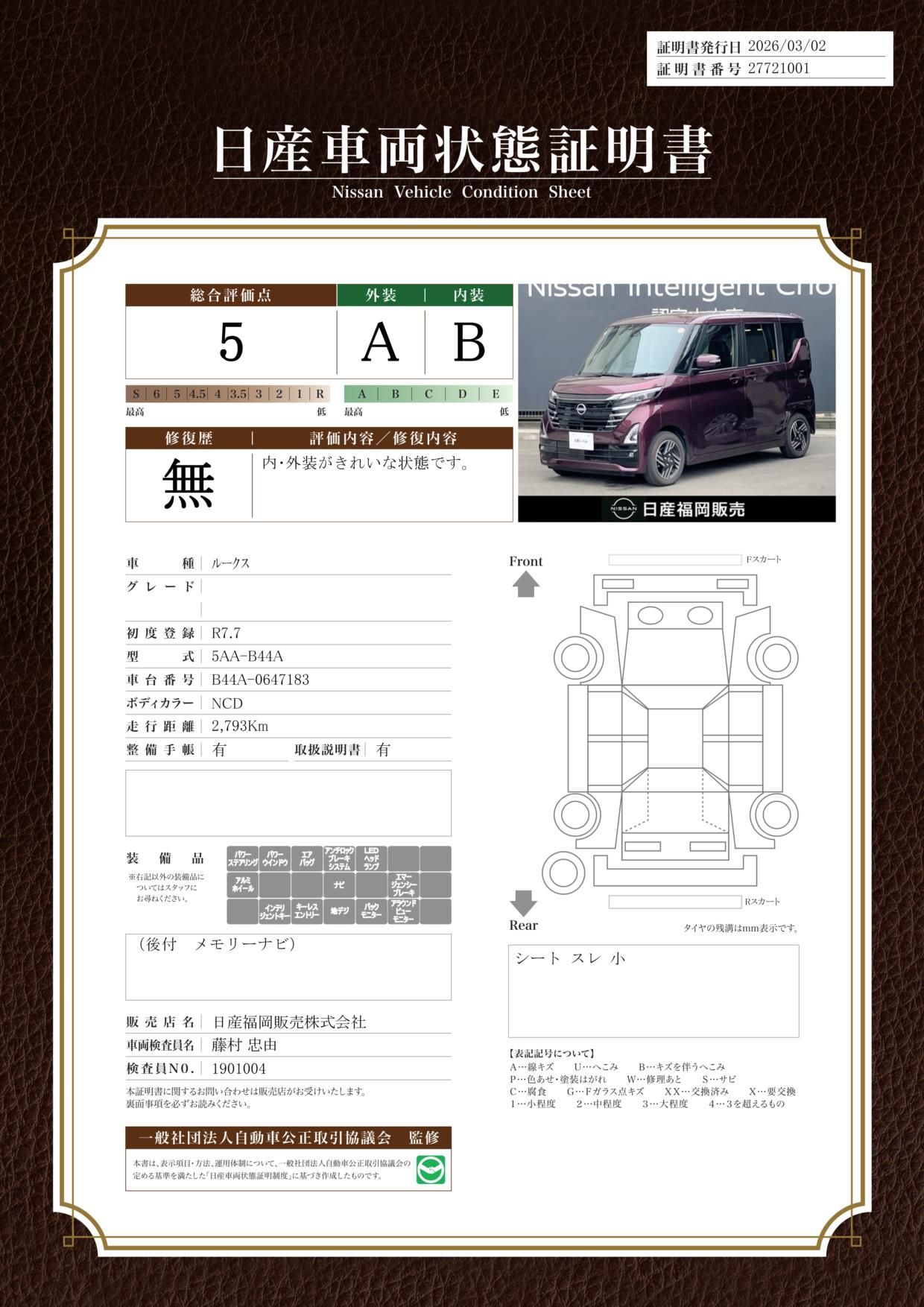 現状車検切れの状態ですが、ご成約時に新しく車検を実施します。車検費用は車両価格に含まれています。
