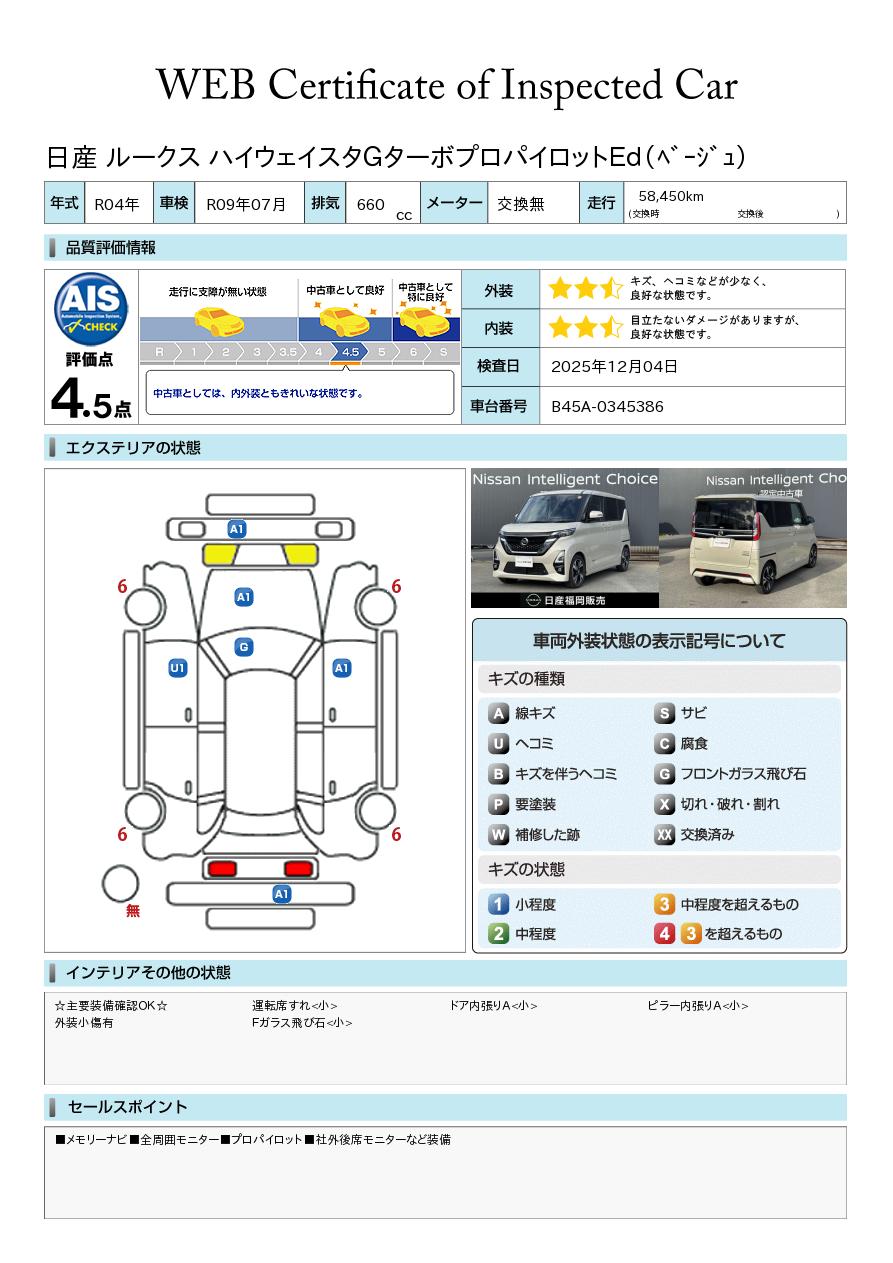 現状括弧書き内の年月まで車検有効期限が残っていますが、ご成約時に新しく車検を取り直します。なお取り直しの費用は車両価格に含まれています。