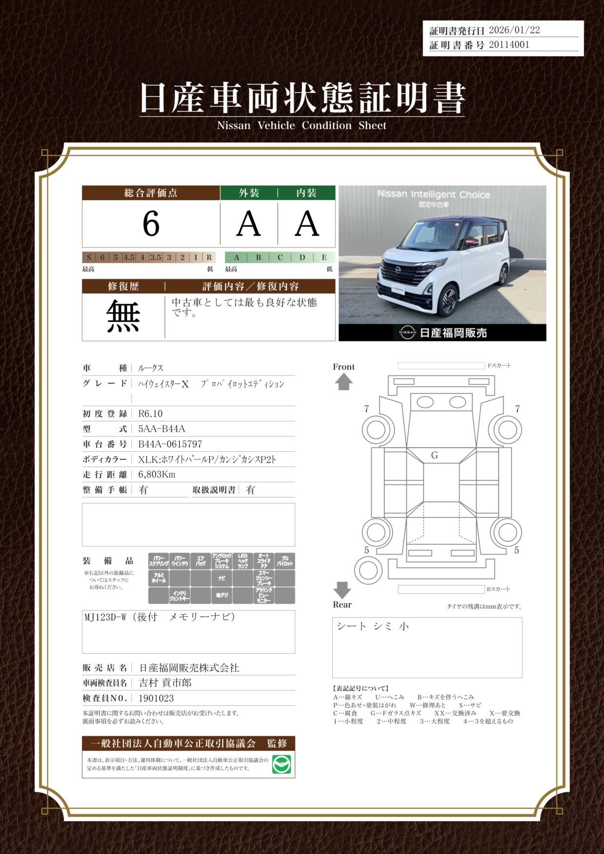 現状括弧書き内の年月まで車検有効期限が残っていますが、ご成約時に新しく車検を取り直します。なお取り直しの費用は車両価格に含まれています。