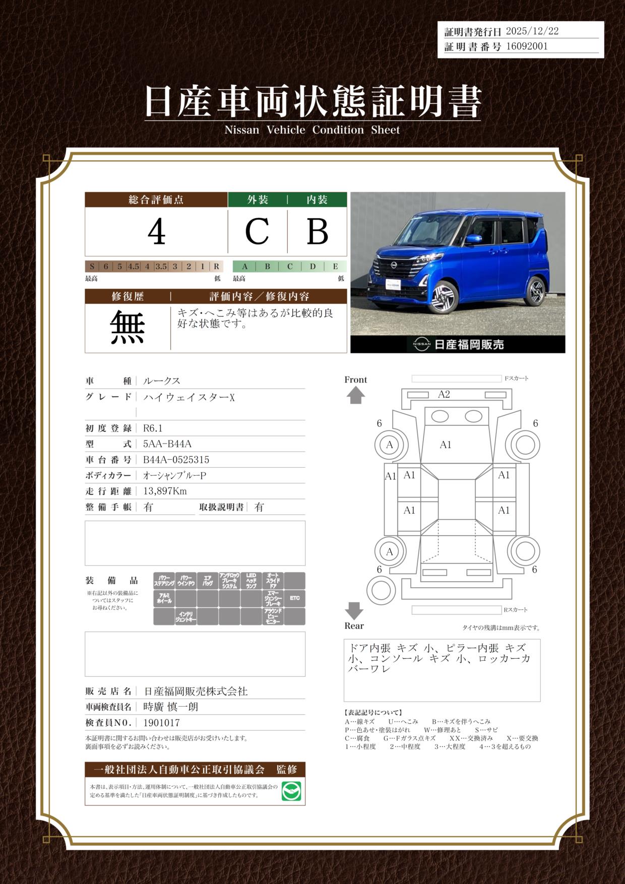 ルークス 660cc 660 ハイウェイスターX ワンオーナー車・認定中古車