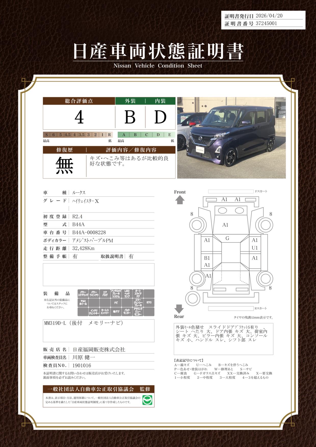 購入後1ヶ月または1,000kmまで無料点検が付いてきます。