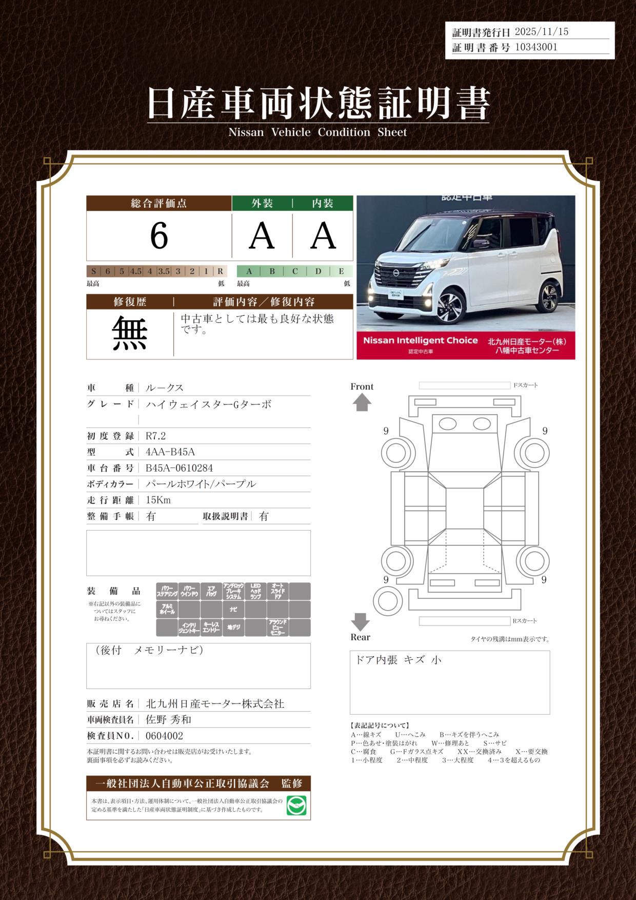 日産 ルークス HWS Gターボ入荷!法定点検渡・新車保証継承・純正ナビ・全周囲カメラ・衝突軽減・横滑防止・踏間違防止・車線逸脱警報・両側電動ドア・LEDライト