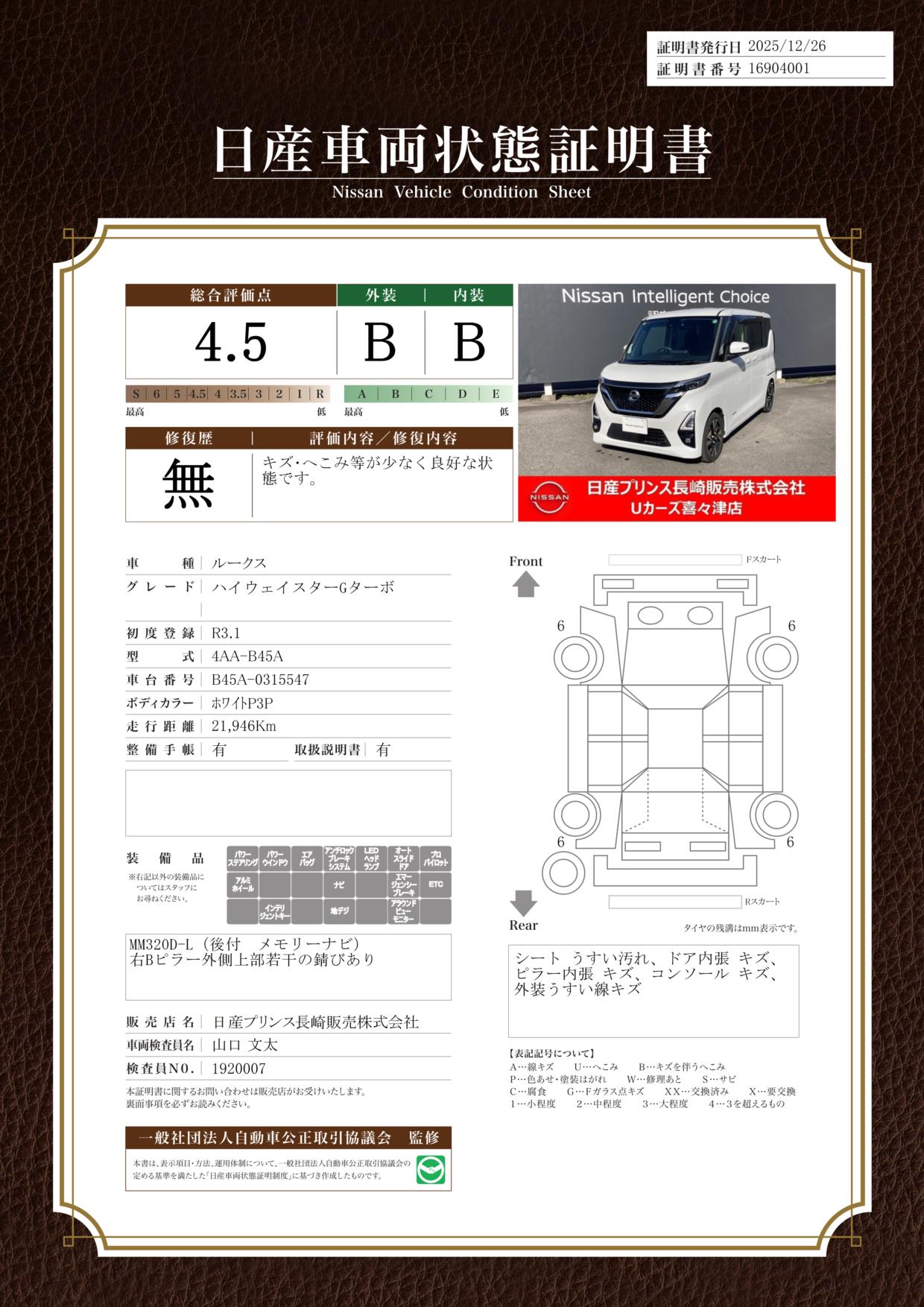 現状括弧書き内の年月まで車検有効期限が残っていますが、ご成約時に新しく車検を取り直します。なお取り直しの費用は車両価格に含まれています。
