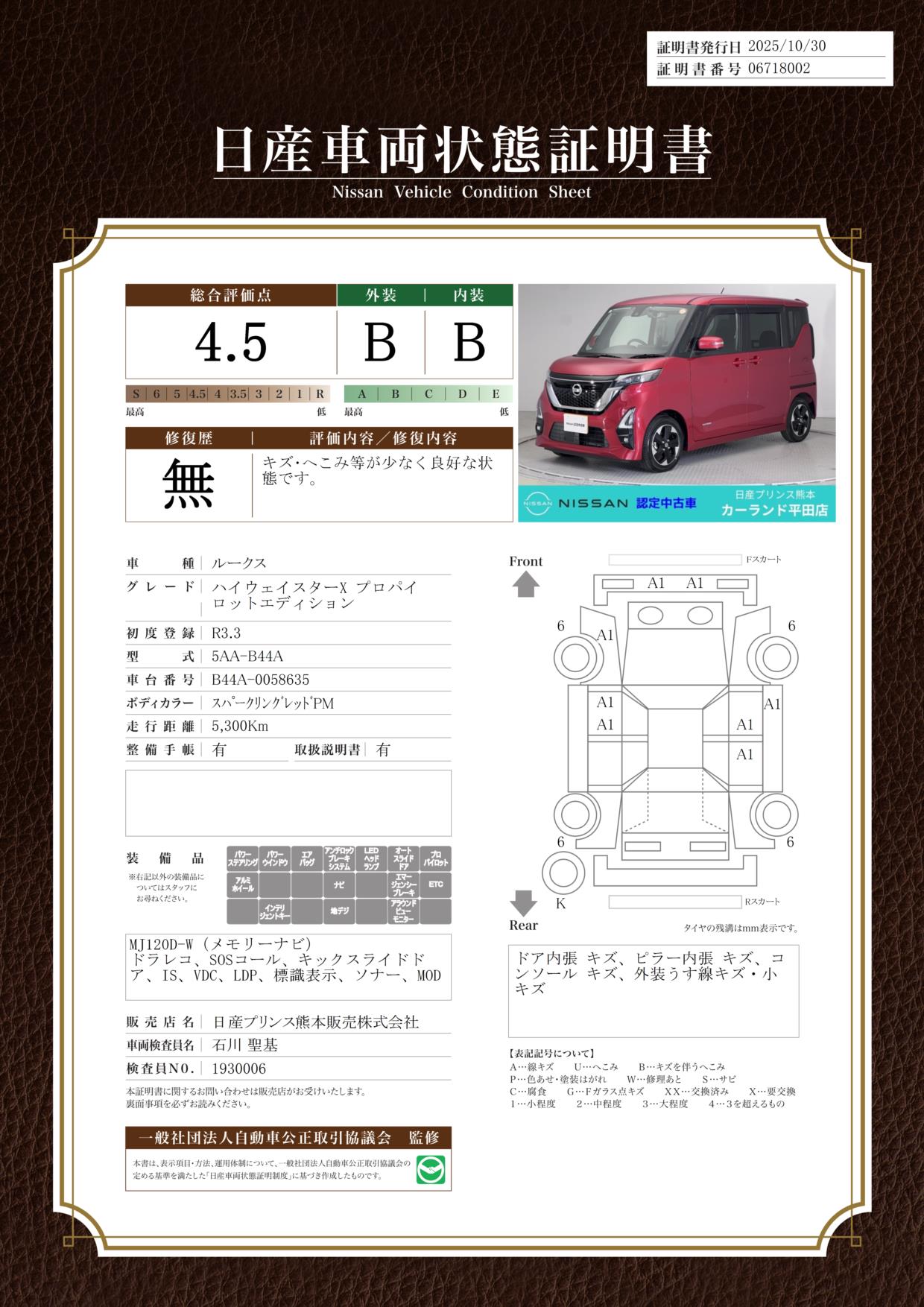 ルークス 660cc 660 ハイウェイスターX 全周囲カメラ 純正ナビ ディーラー保証