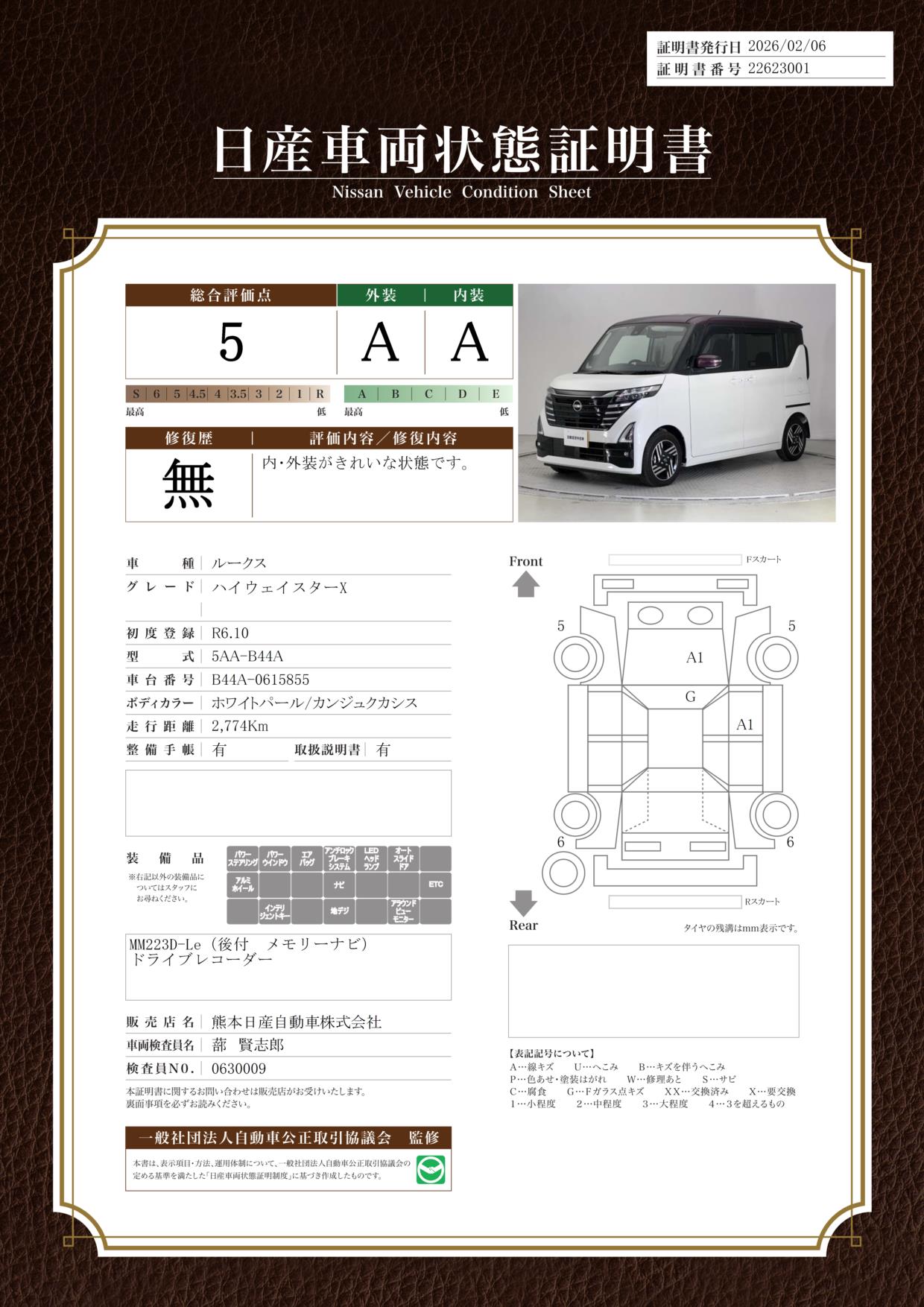 「車両状態証明書」は、査定協会監修のプロの検査員が公正かつ確かな基準で検査した”安心の証”です。