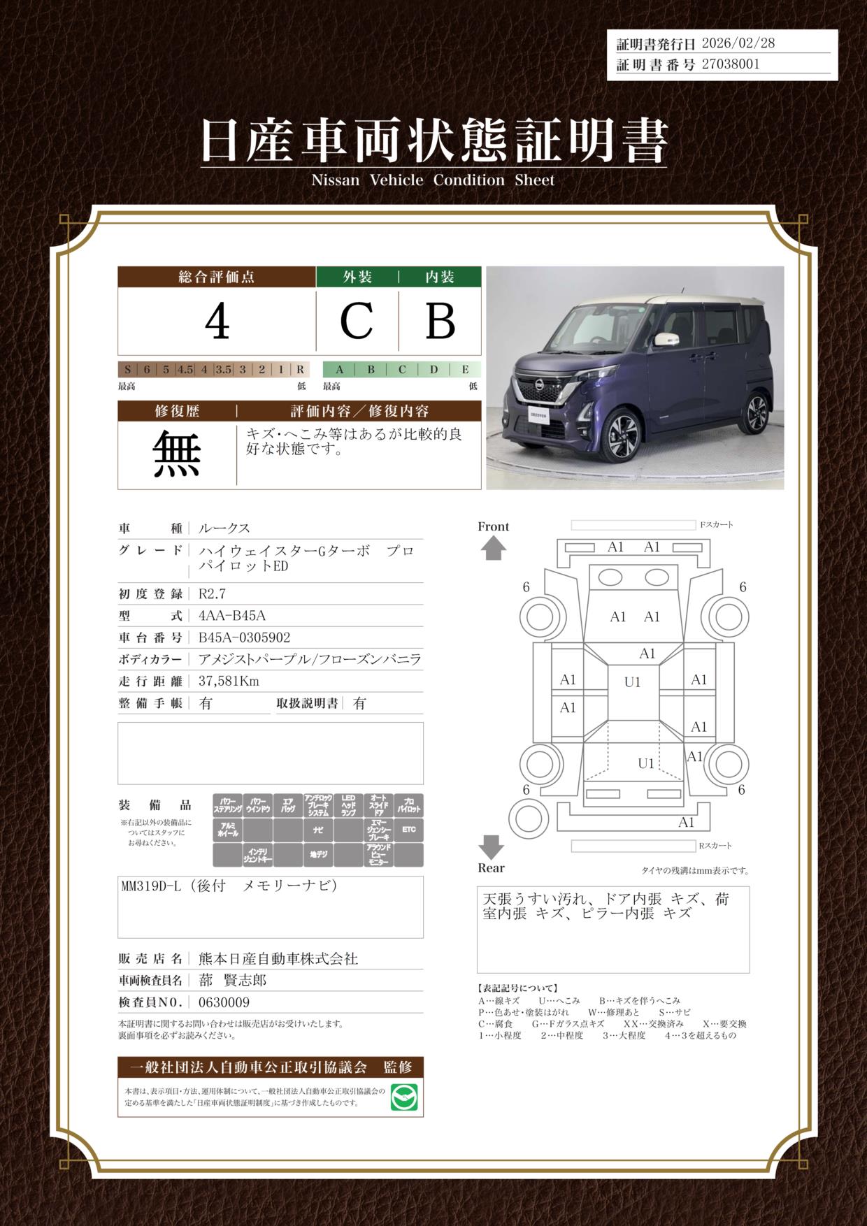 現状括弧書き内の年月まで車検有効期限が残っていますが、ご成約時に新しく車検を取り直します。なお取り直しの費用は車両価格に含まれています。
