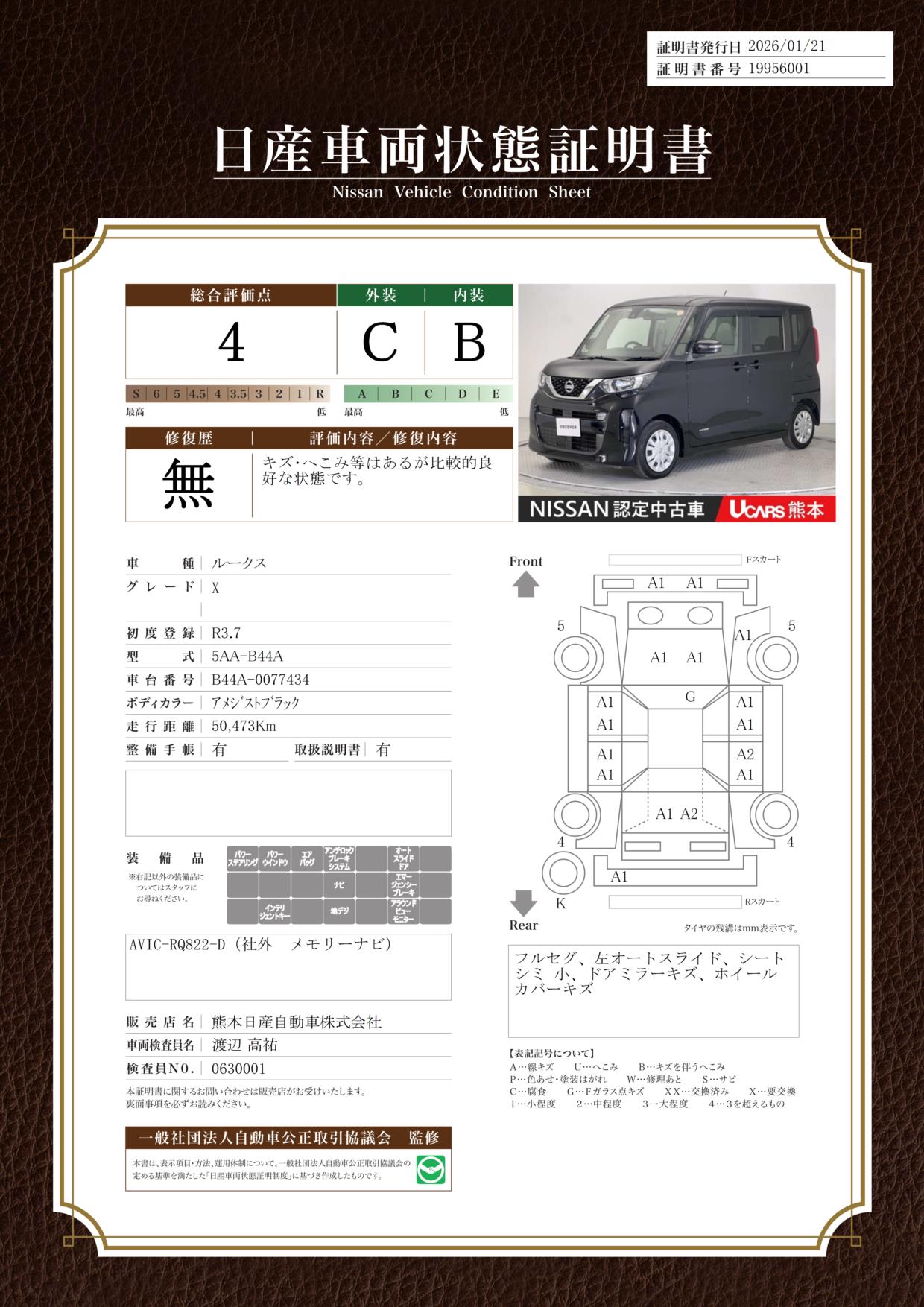 ルークス 660cc 660 X 前・車内ドラレコ 全周囲カメラ 純正ナビ B