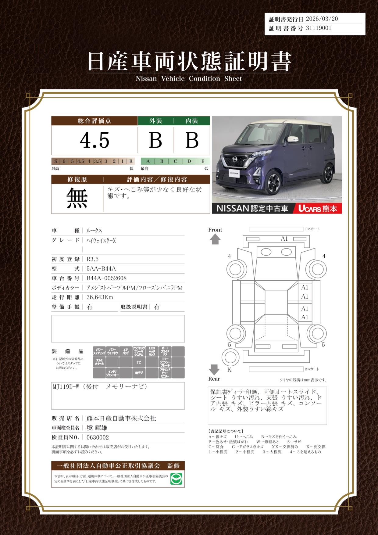 購入から3か月間、走行距離無制限で保証。