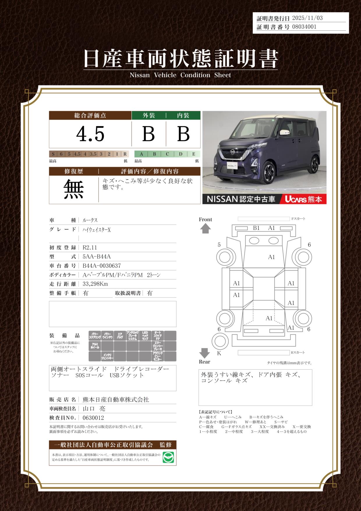 ルークス 660cc 660 X 助手席オートスライド LED ETC ドラレコ