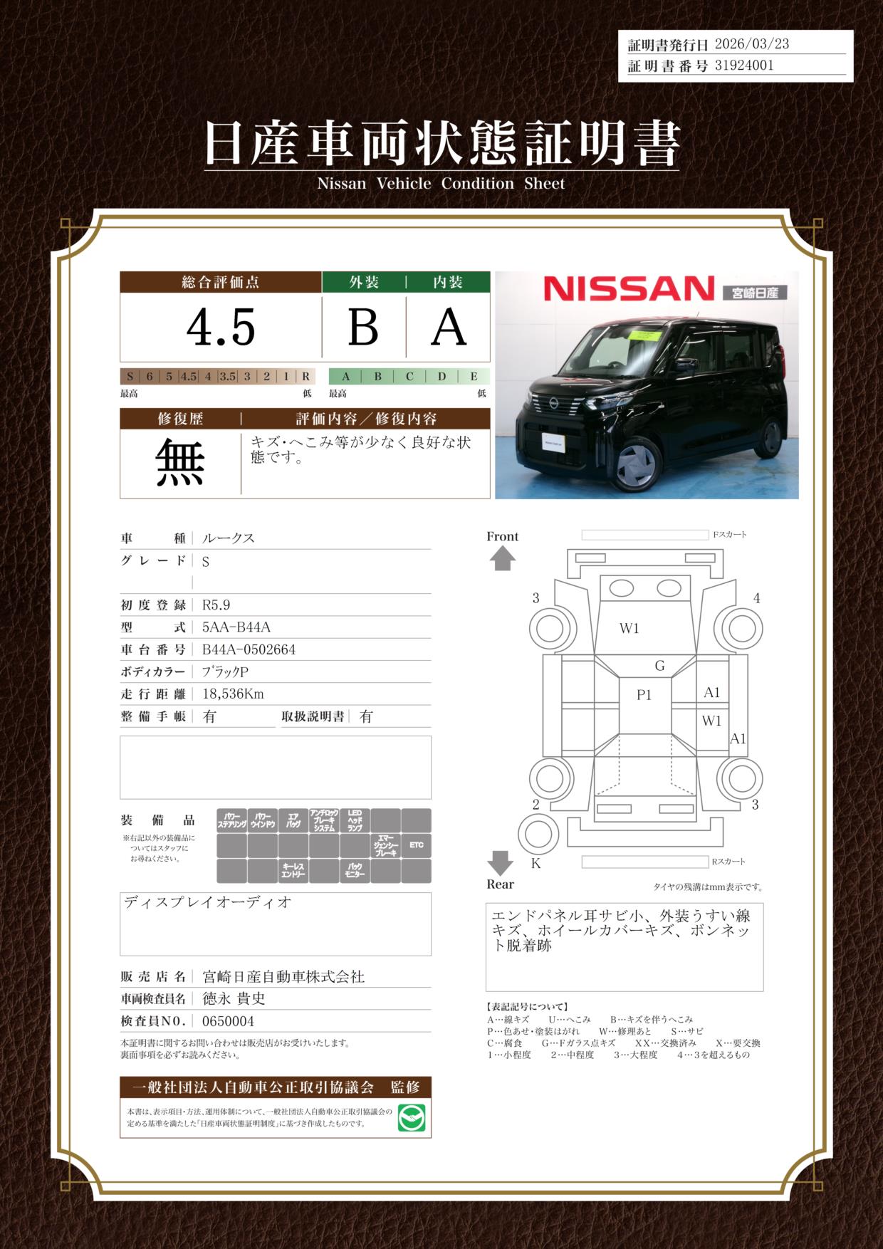 「車両状態証明書」は、査定協会監修のプロの検査員が公正かつ確かな基準で検査した”安心の証”です。