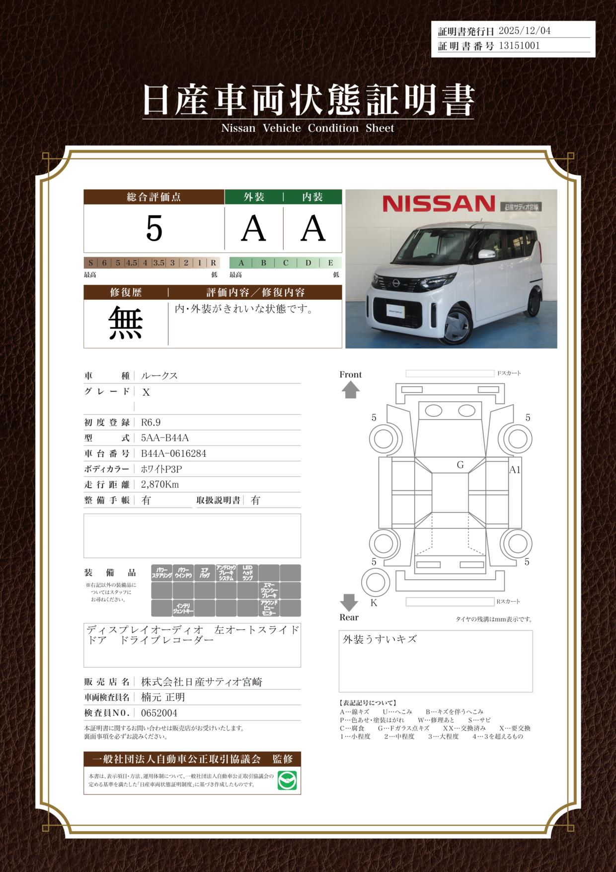 この度は当店を検索頂き誠にありがとうございます。今話題のe-Powerや100%電気で走る軽自動車サクラ、安全装置搭載車を多数展示!価格は総額表示で分りやすく、更に日産のワイド保証付で安心!お買得車を多数ご準備して、ご来場を心よりお待ちしております。12月は『冬のお買得中古車フェア!』を開催!期間R7年12月1日(月)~12月29日(月)迄。毎週、火・水曜日が定休日。