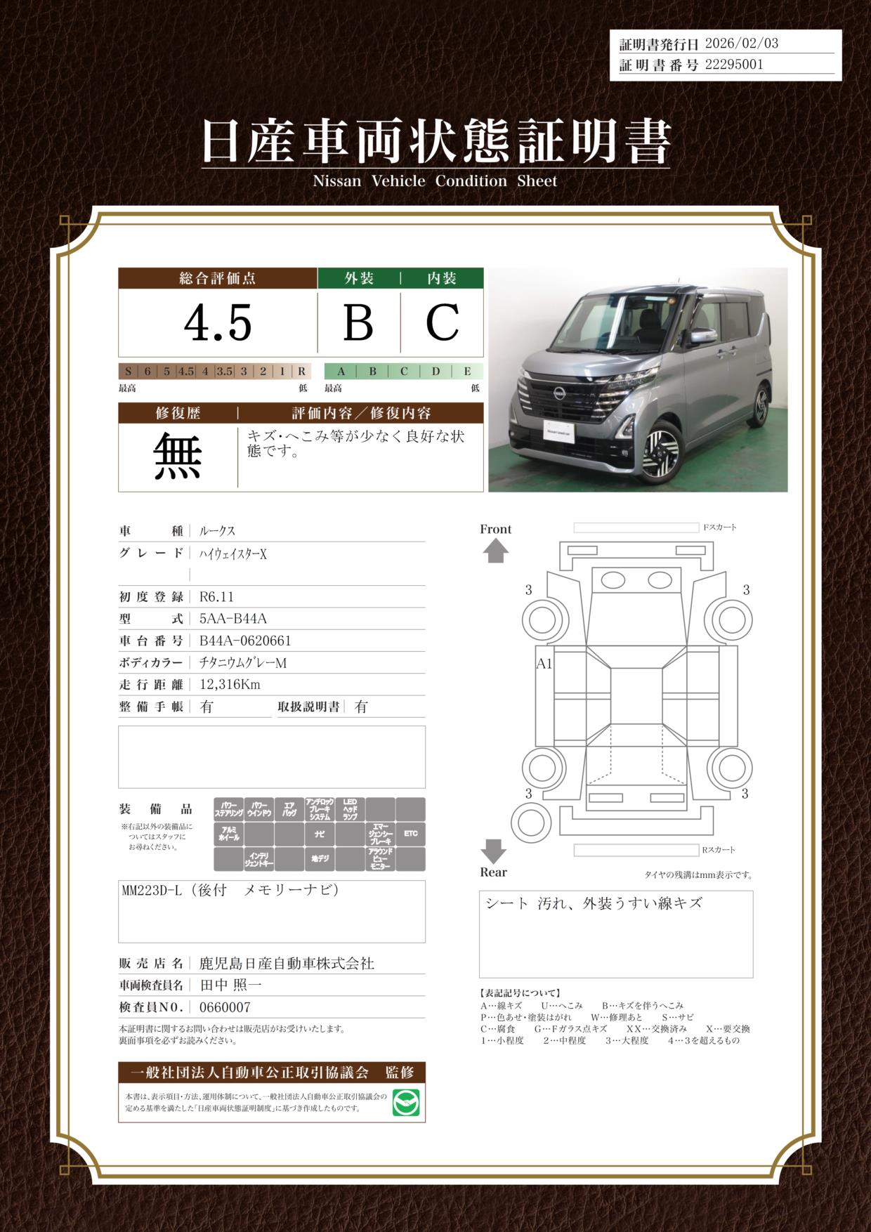 この度は、数多くの日産中古車店舗の中から鹿児島日産カーパレス国分の展示車両をご覧いただき誠にありがとうございます。当店は、日産ディーラー販売店ならではの保証やサービス工場と隣接した店舗の為アフターサービスに自信あり!親身な対応で、お客様に満足していただけるお車をご提案致します。2月7日・8日は決算大感謝祭を開催!。皆さまのお越しをスタッフ一同心よりお待ちしております。2月の定休日は、4日・10日・11日・17日・18日・25日になります。