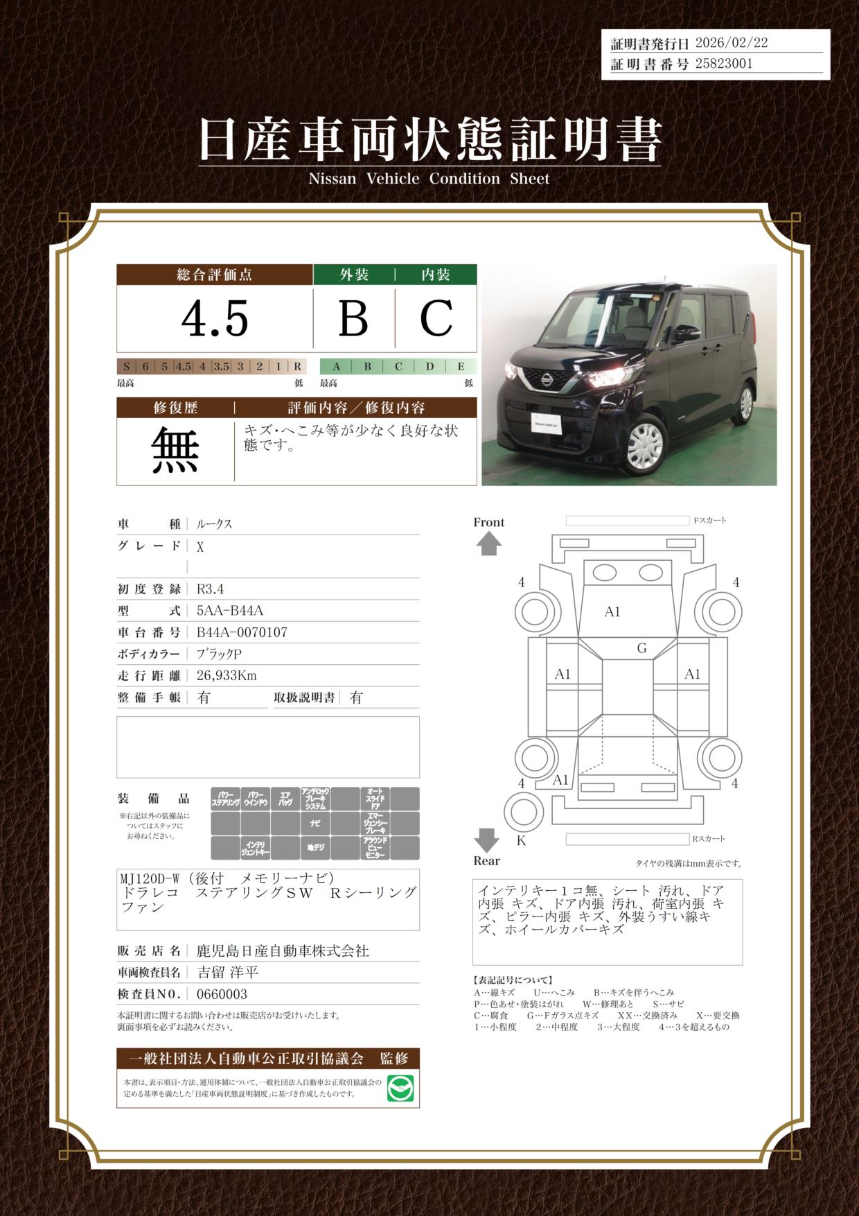 ルークス 660cc 660 X 全周囲カメラ・衝突軽減ブレーキ搭載