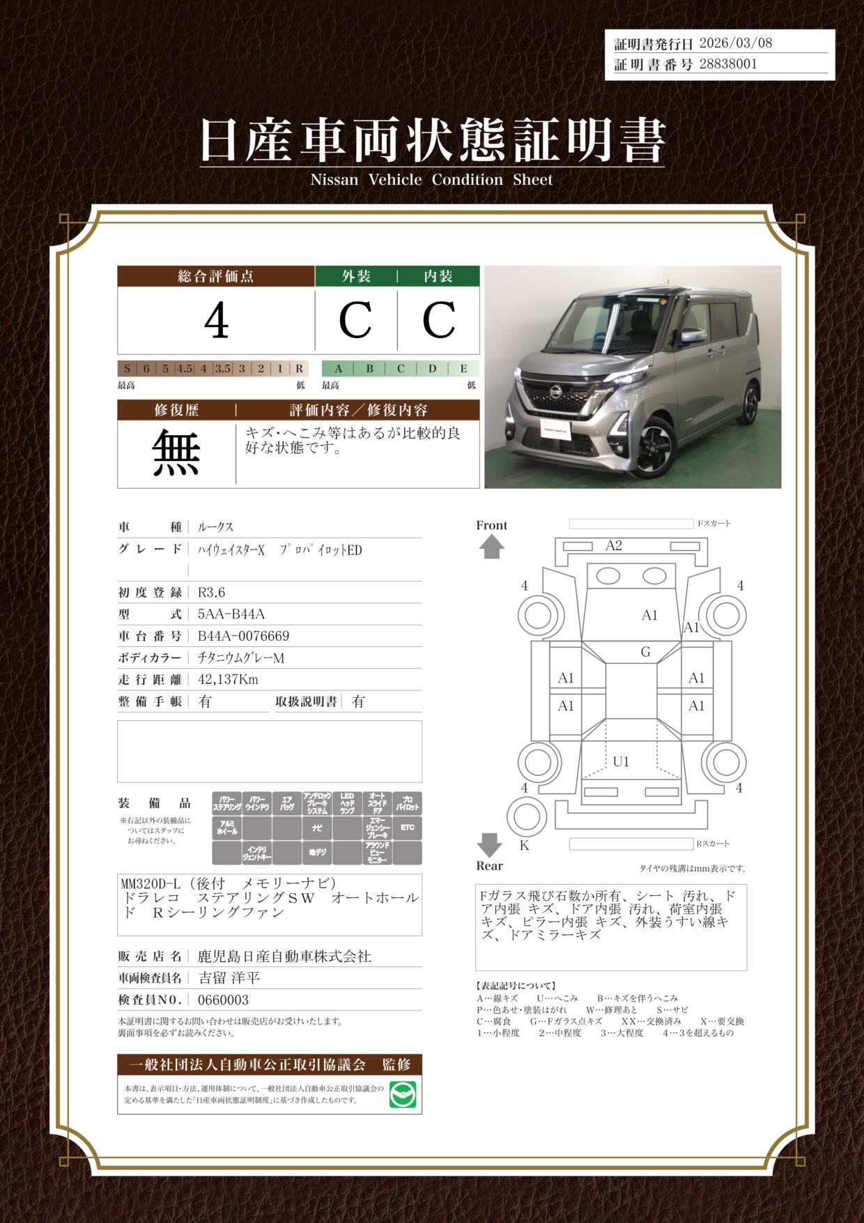 現状括弧書き内の年月まで車検有効期限が残っていますが、ご成約時に新しく車検を取り直します。なお取り直しの費用は車両価格に含まれています。