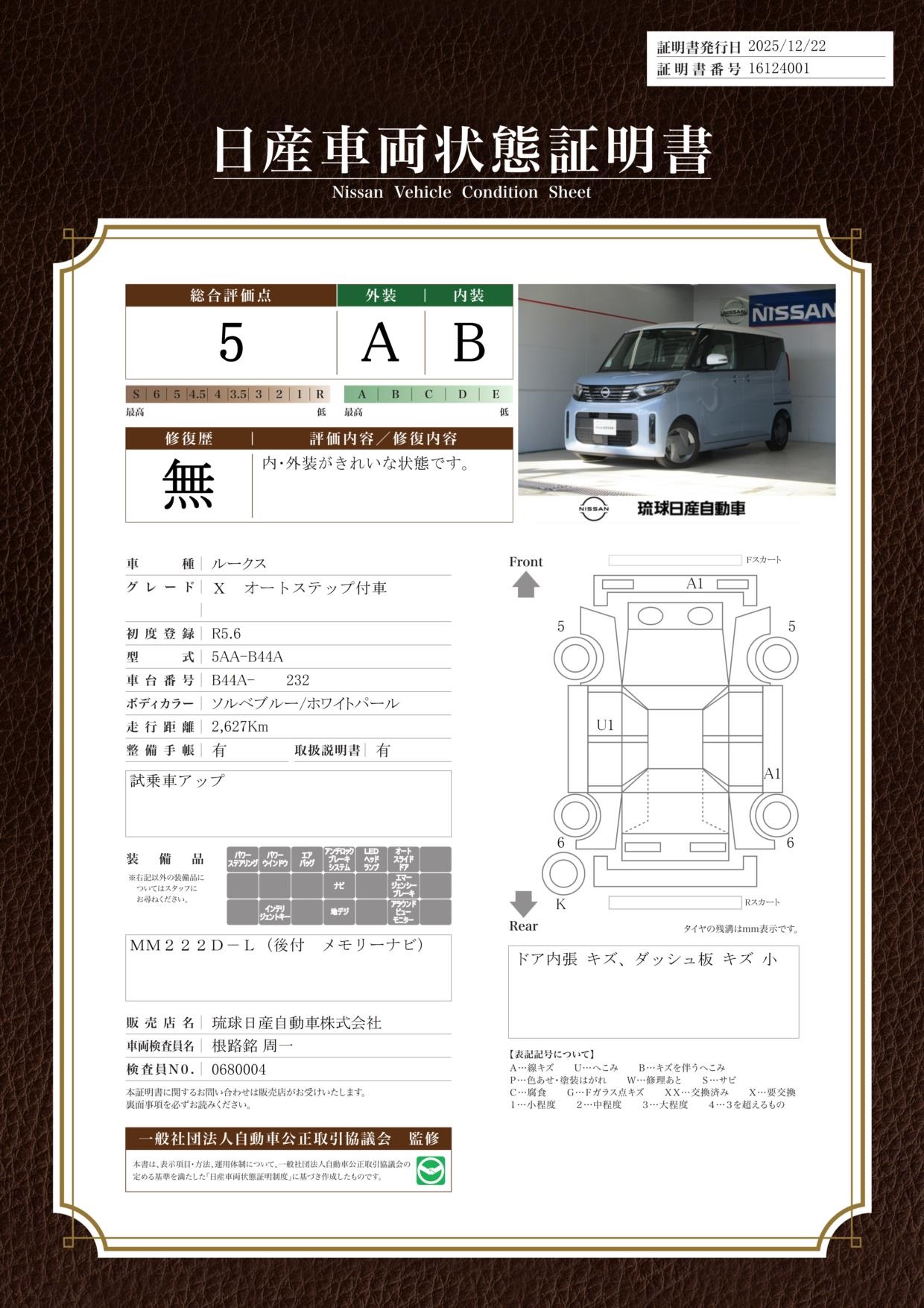 根路銘商談中 珍しい助手席側オートステップ付き!日産ルークス X 入庫!純正9インチナビ/アラウンドビューモニター、オートステップ付車、両側パワ-スライドドア【防錆未施工】