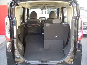 後席を格納することで、高さと奥行のある大容量ラゲッジスペースが出現!ヘッドレストを外さずに格納できるので、素早く格納でき、操作も簡単なルークスです。