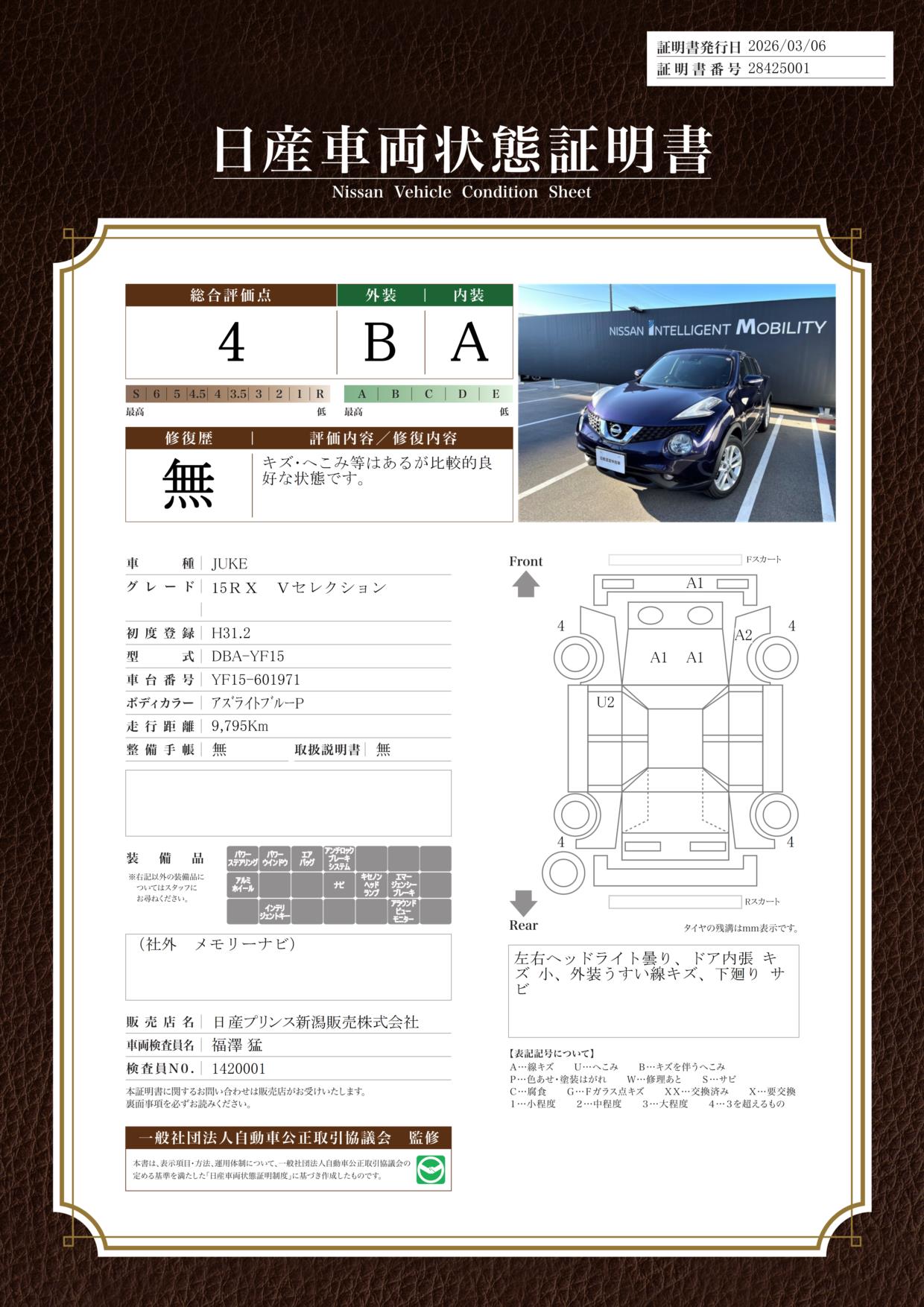 購入後1ヶ月または1,000kmまで無料点検が付いてきます。