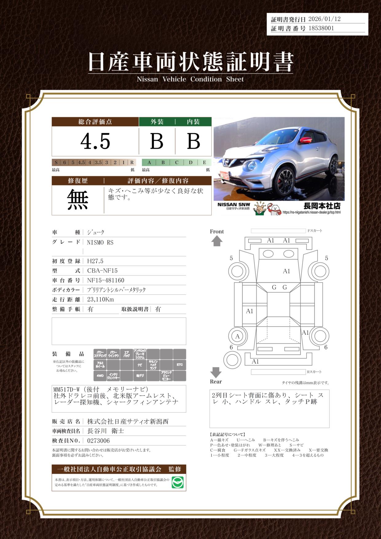 ジューク 1600cc 1.6 NISMO RS 4WD magic core 16GT最終スペック