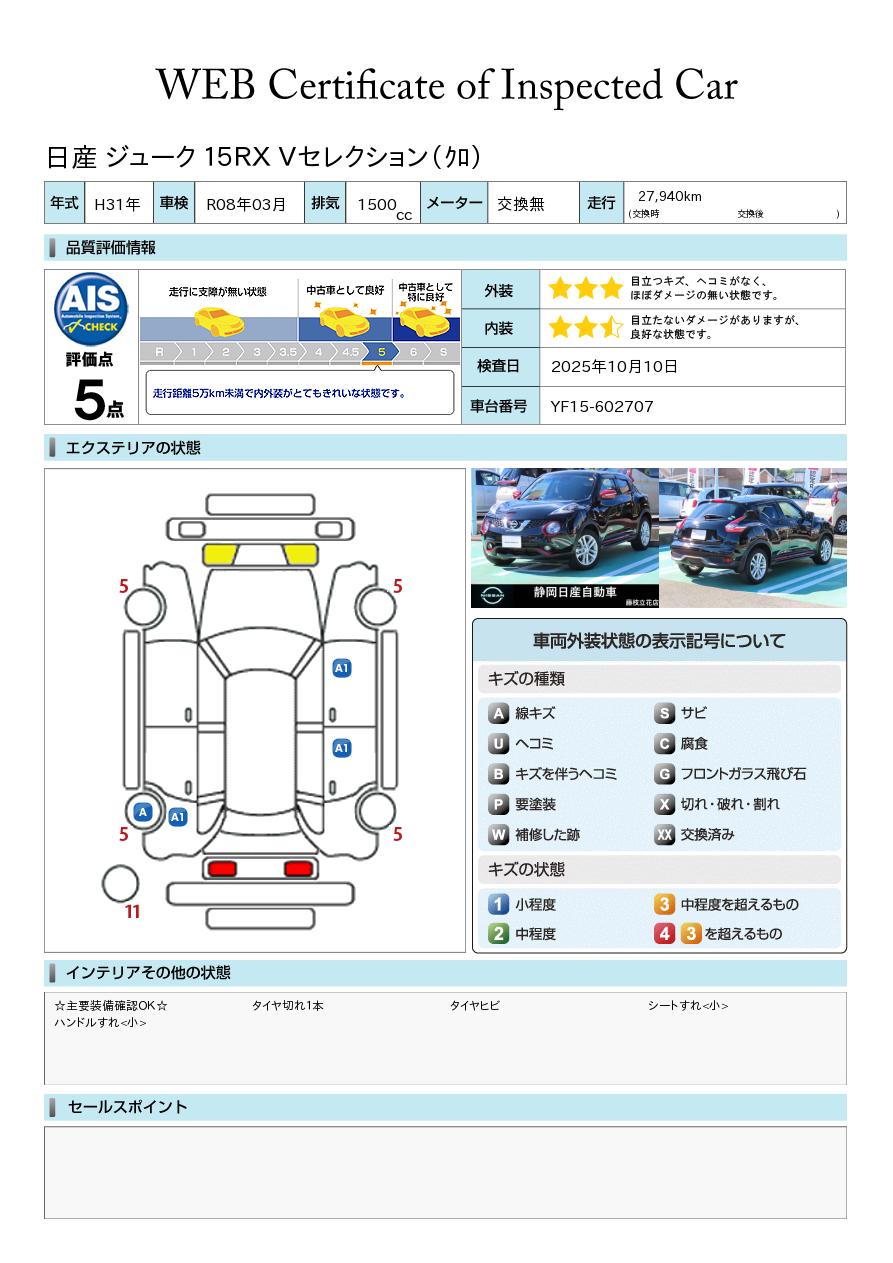 ジューク 1500cc 1.5 15RX Vセレクション 純ナビAVMキセノンエマブレインテリキー