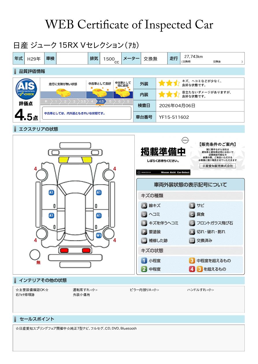 現状括弧書き内の年月まで車検有効期限が残っていますが、ご成約時に新しく車検を取り直します。なお取り直しの費用は車両価格に含まれています。