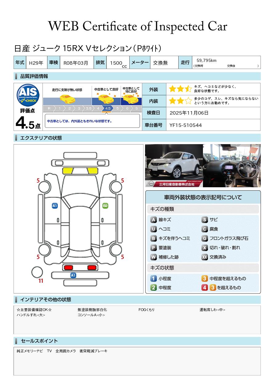ジューク 1500cc 1.5 15RX Vセレクション 純正メモリーナビ TV 全周囲カメラ