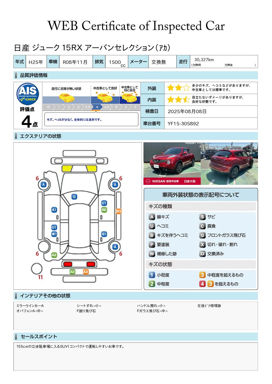 現状括弧書き内の年月まで車検有効期限が残っていますが、ご成約時に新しく車検を取り直します。なお取り直しの費用は車両価格に含まれています。