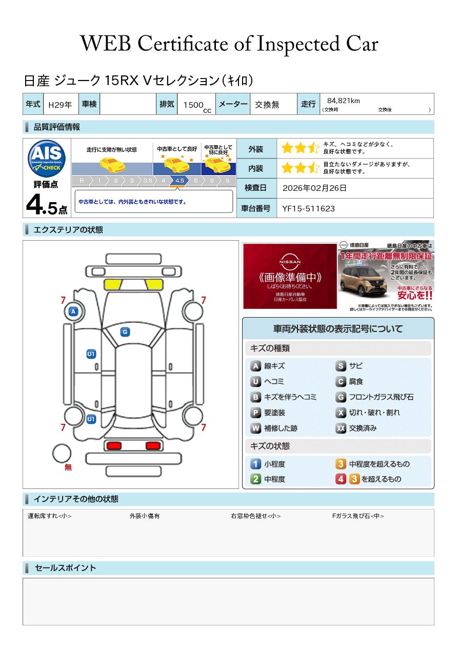 評価点イメージ : 中古車としては、内外装ともきれいな状態です。