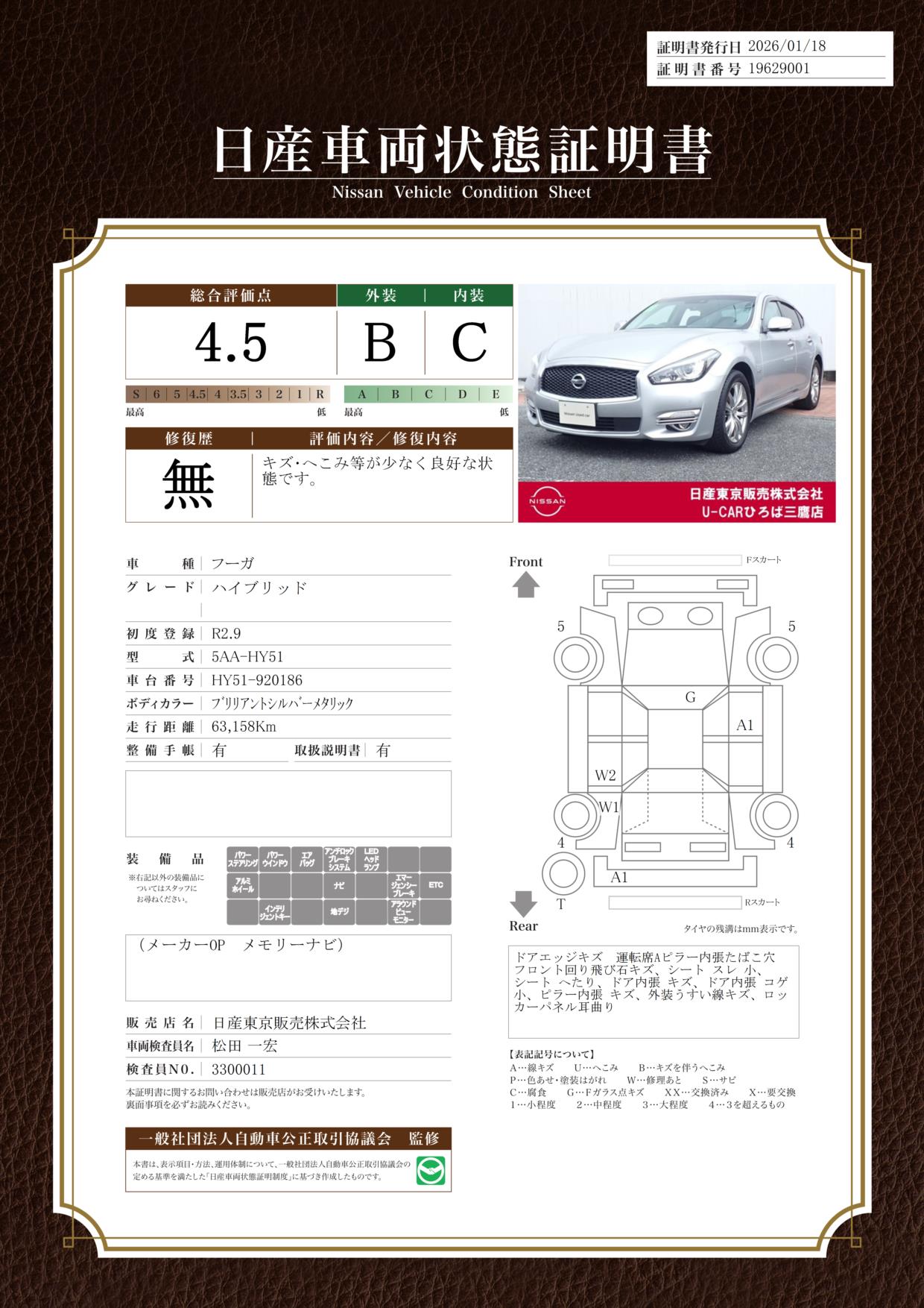 フーガハイブリッド 3500cc 3.5 本革シート シートエアコン エマブレ
