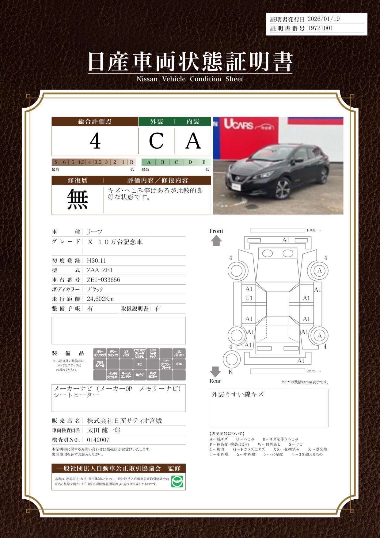現状括弧書き内の年月まで車検有効期限が残っていますが、ご成約時に新しく車検を取り直します。なお取り直しの費用は車両価格に含まれています。