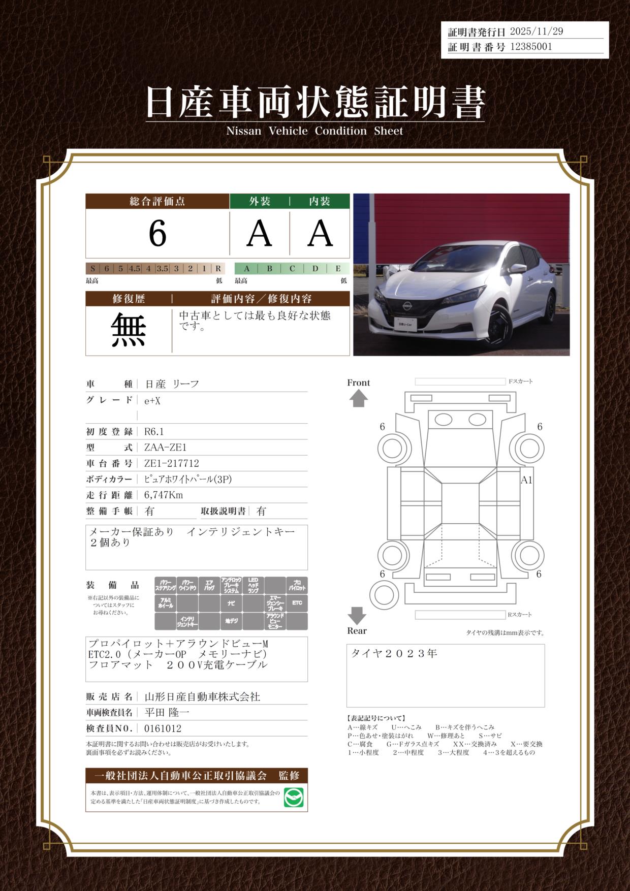 令和6年式 試乗車UP リーフ e+X 60KW 走行6747km 車検R9年1月!★EV 60KW★プロパイ★NC大型ナビ★アラモニ★純正ドラレコ★ETC2.0★LED★前席+後席シートヒーター★