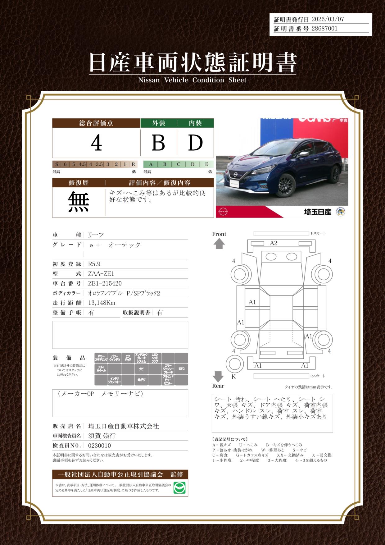 日産自動車認定の中古車販売店です。