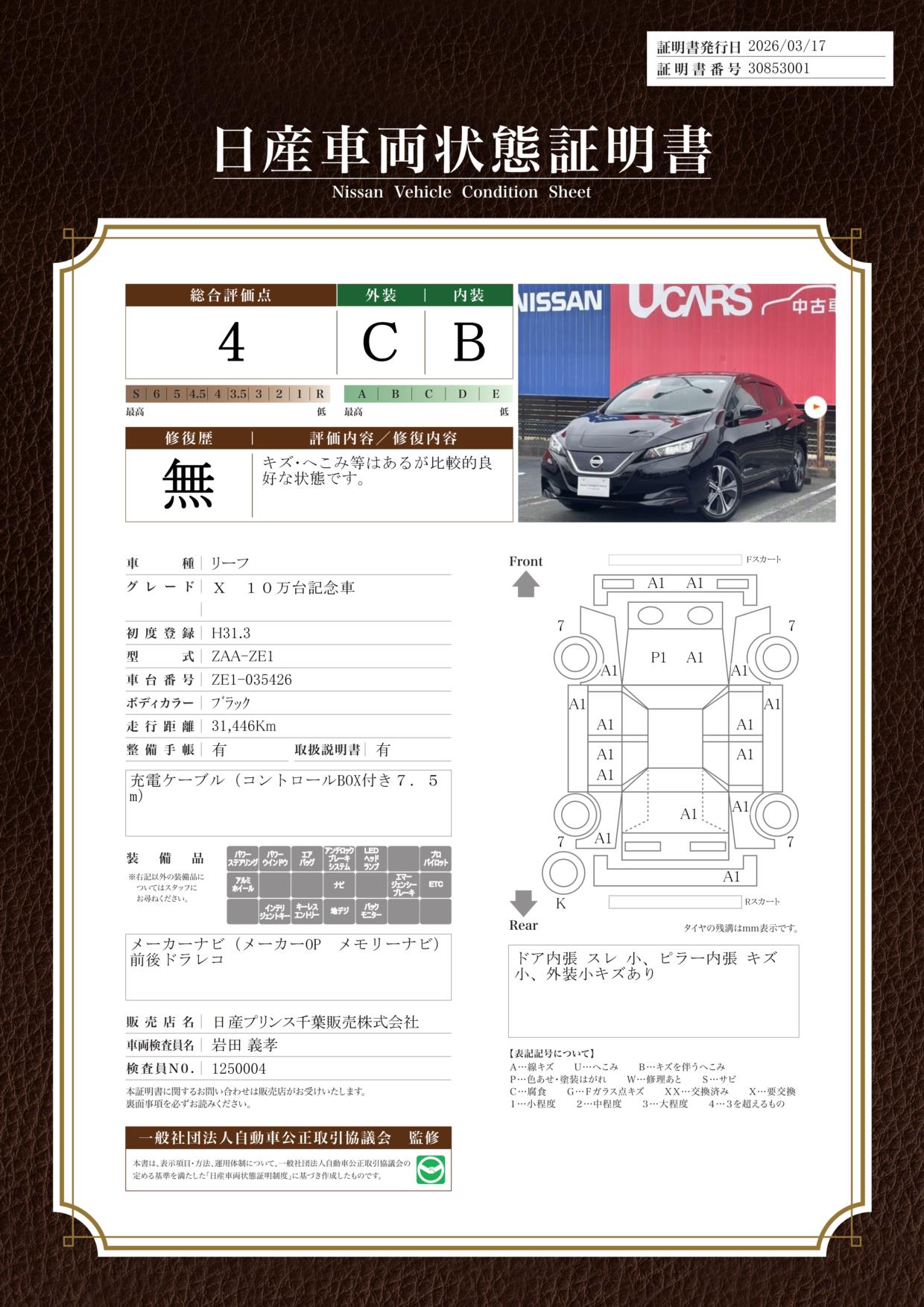 日産自動車認定の中古車販売店です。