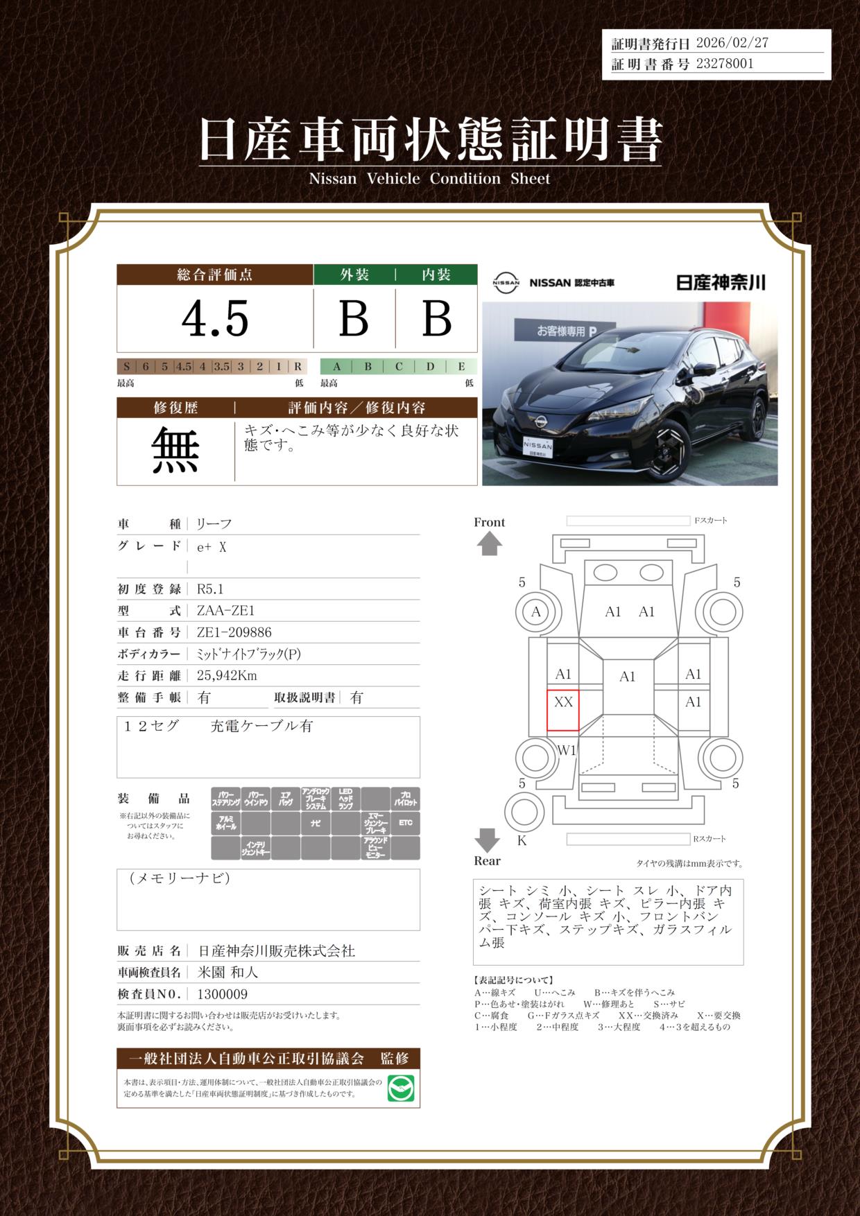 現状括弧書き内の年月まで車検有効期限が残っていますが、ご成約時に新しく車検を取り直します。なお取り直しの費用は車両価格に含まれています。