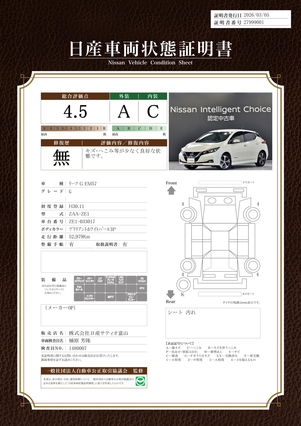 日産車両状態証明