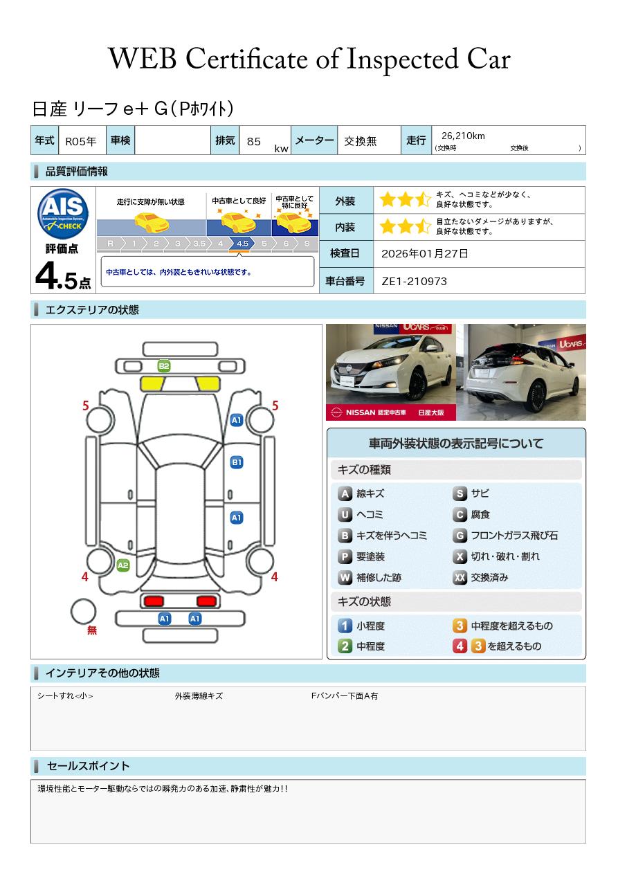 「車両状態証明書」は、査定協会監修のプロの検査員が公正かつ確かな基準で検査した”安心の証”です。