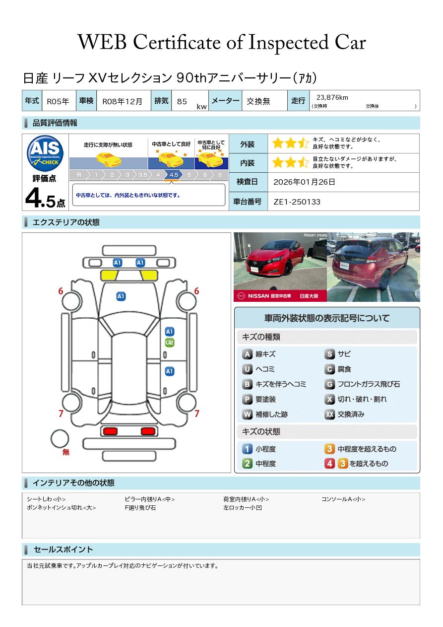 「車両状態証明書」は、査定協会監修のプロの検査員が公正かつ確かな基準で検査した”安心の証”です。