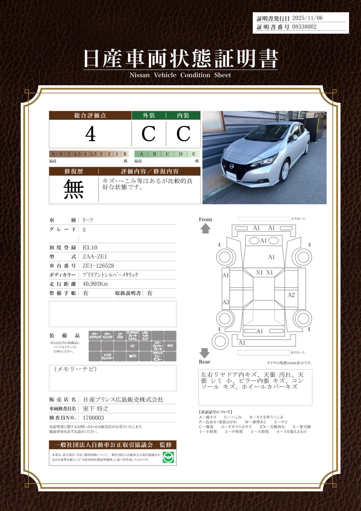リーフ S ETC2.0  純正ナビ(MM121D-W)