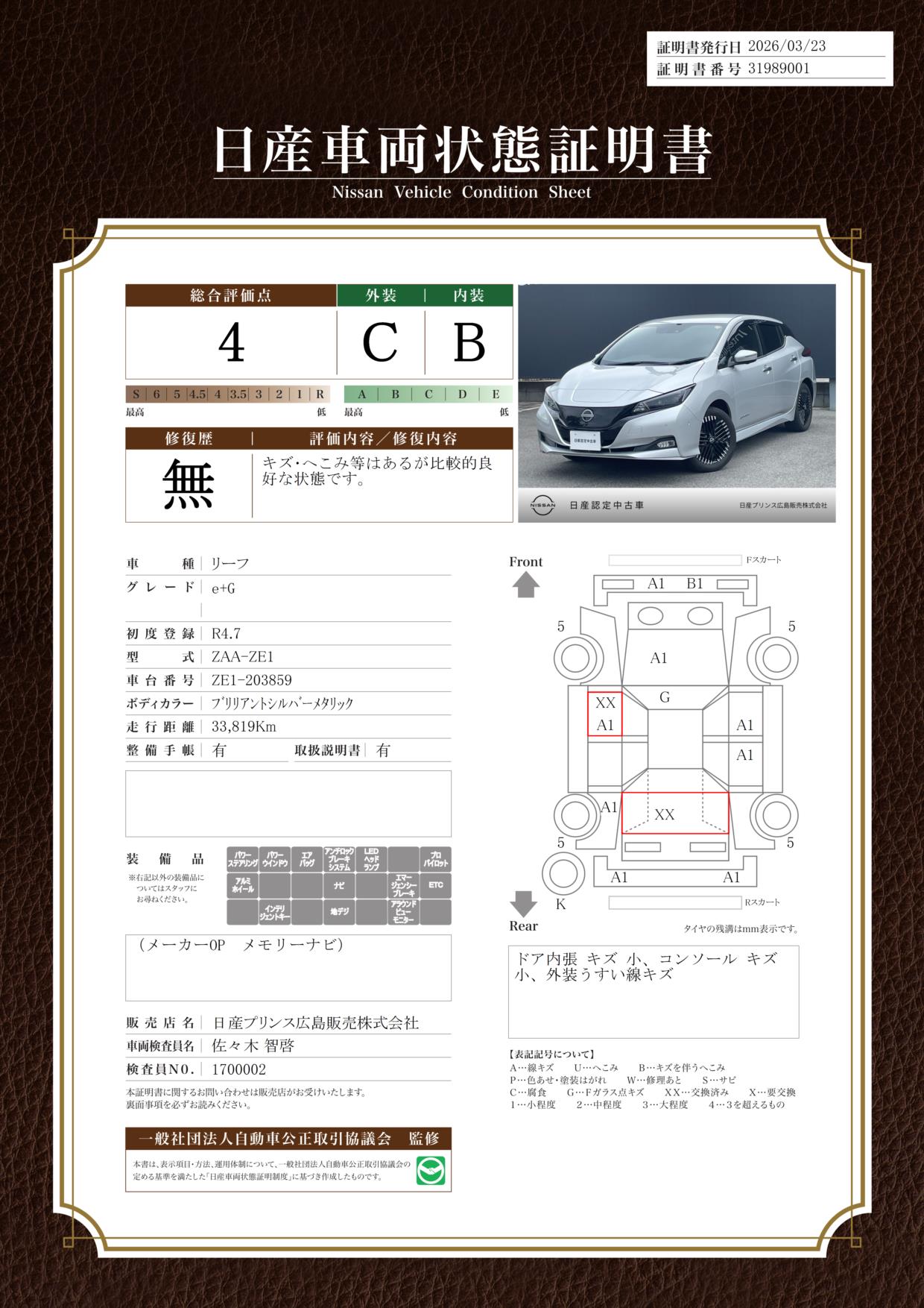 現状括弧書き内の年月まで車検有効期限が残っていますが、ご成約時に新しく車検を取り直します。なお取り直しの費用は車両価格に含まれています。