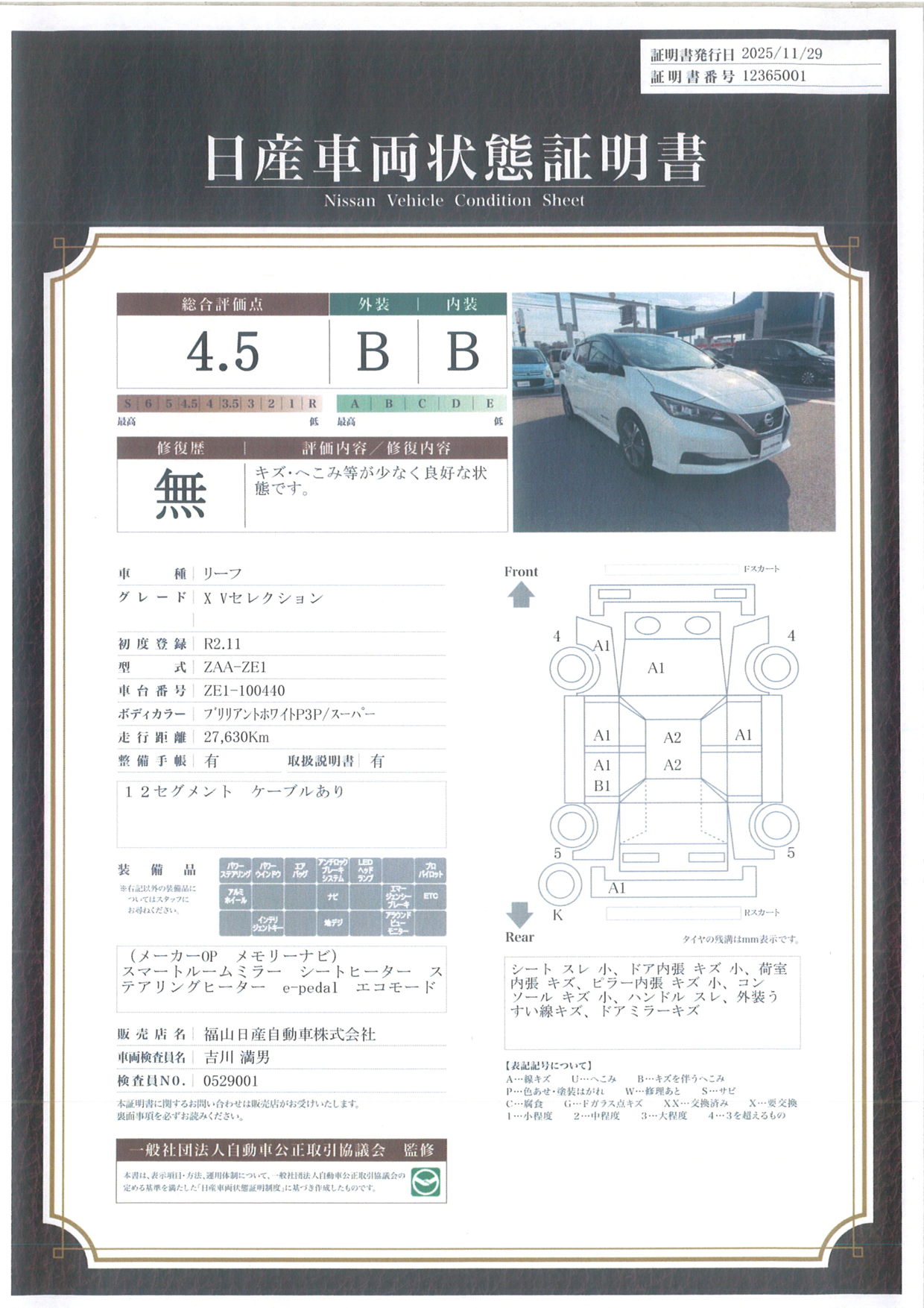 評価点イメージ : キズ・へこみ等が少なく良好な状態です。