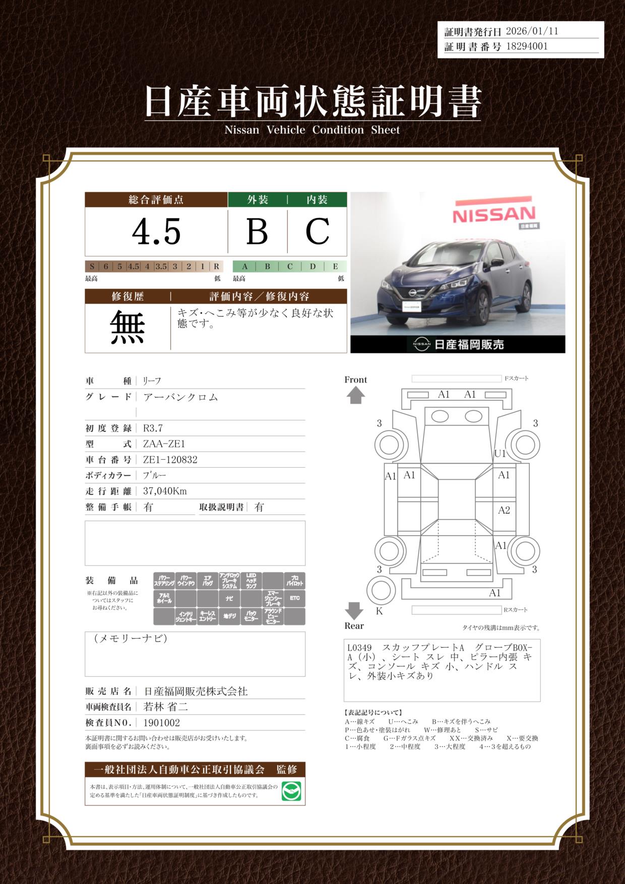 現状括弧書き内の年月まで車検有効期限が残っていますが、ご成約時に新しく車検を取り直します。なお取り直しの費用は車両価格に含まれています。
