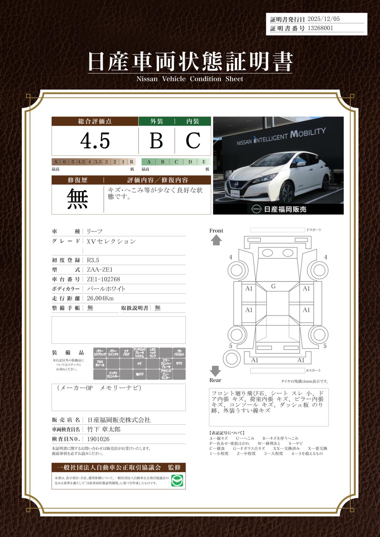 現状括弧書き内の年月まで車検有効期限が残っていますが、ご成約時に新しく車検を取り直します。なお取り直しの費用は車両価格に含まれています。
