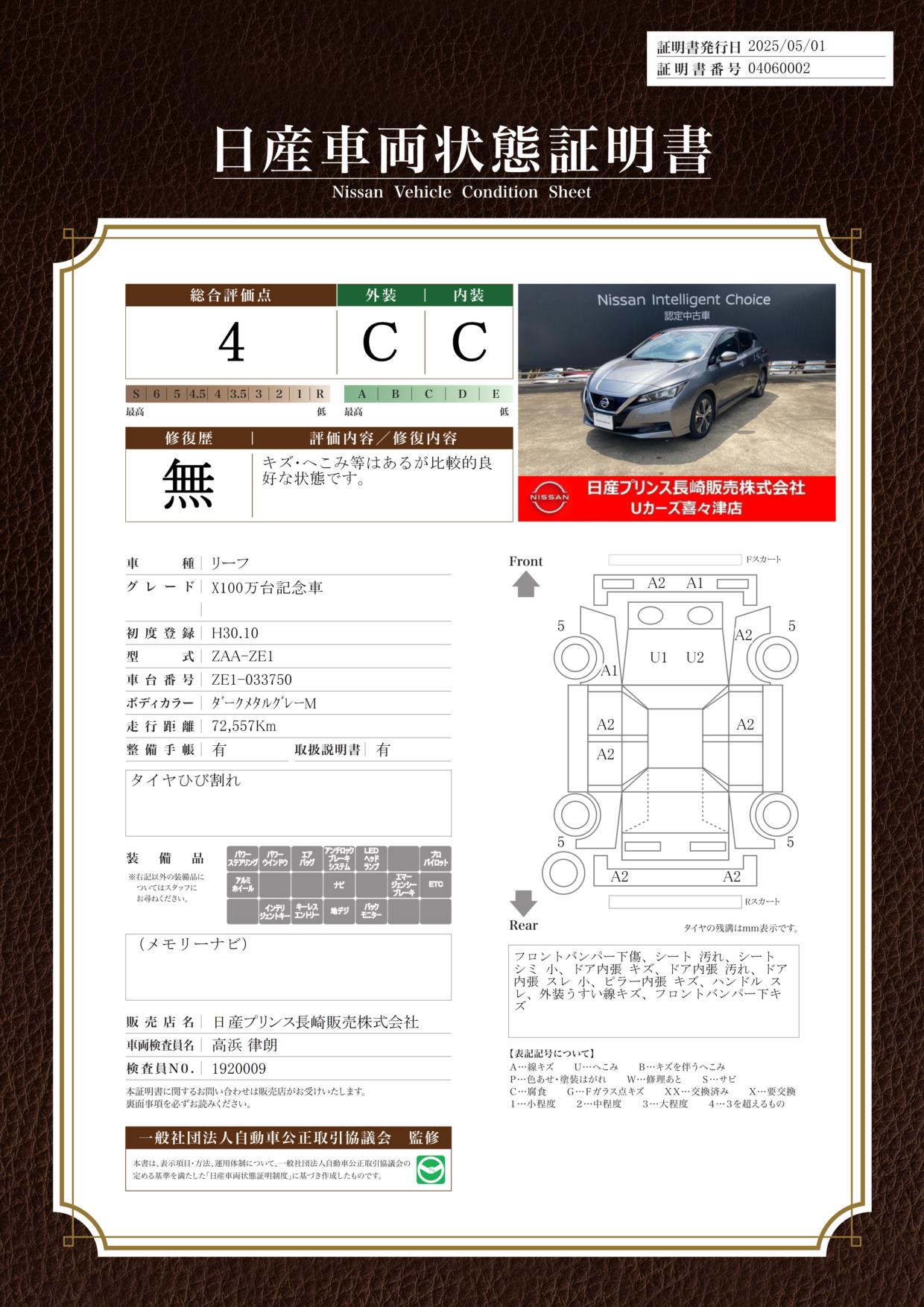 リーフ X 10万台記念車 ナビゲーション  バックモニター   ETC