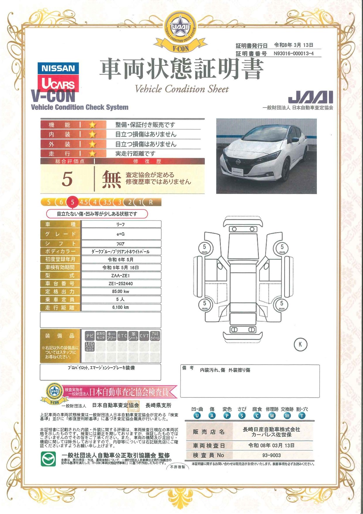 現状括弧書き内の年月まで車検有効期限が残っていますが、ご成約時に新しく車検を取り直します。なお取り直しの費用は車両価格に含まれています。