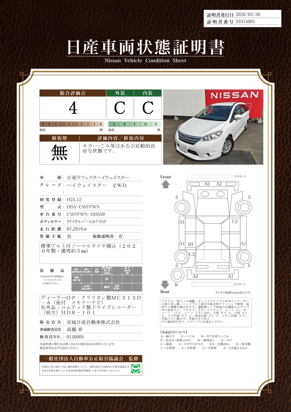 現状車検切れの状態であり、車検費用は車両価格とは別でご負担いただく必要があります。