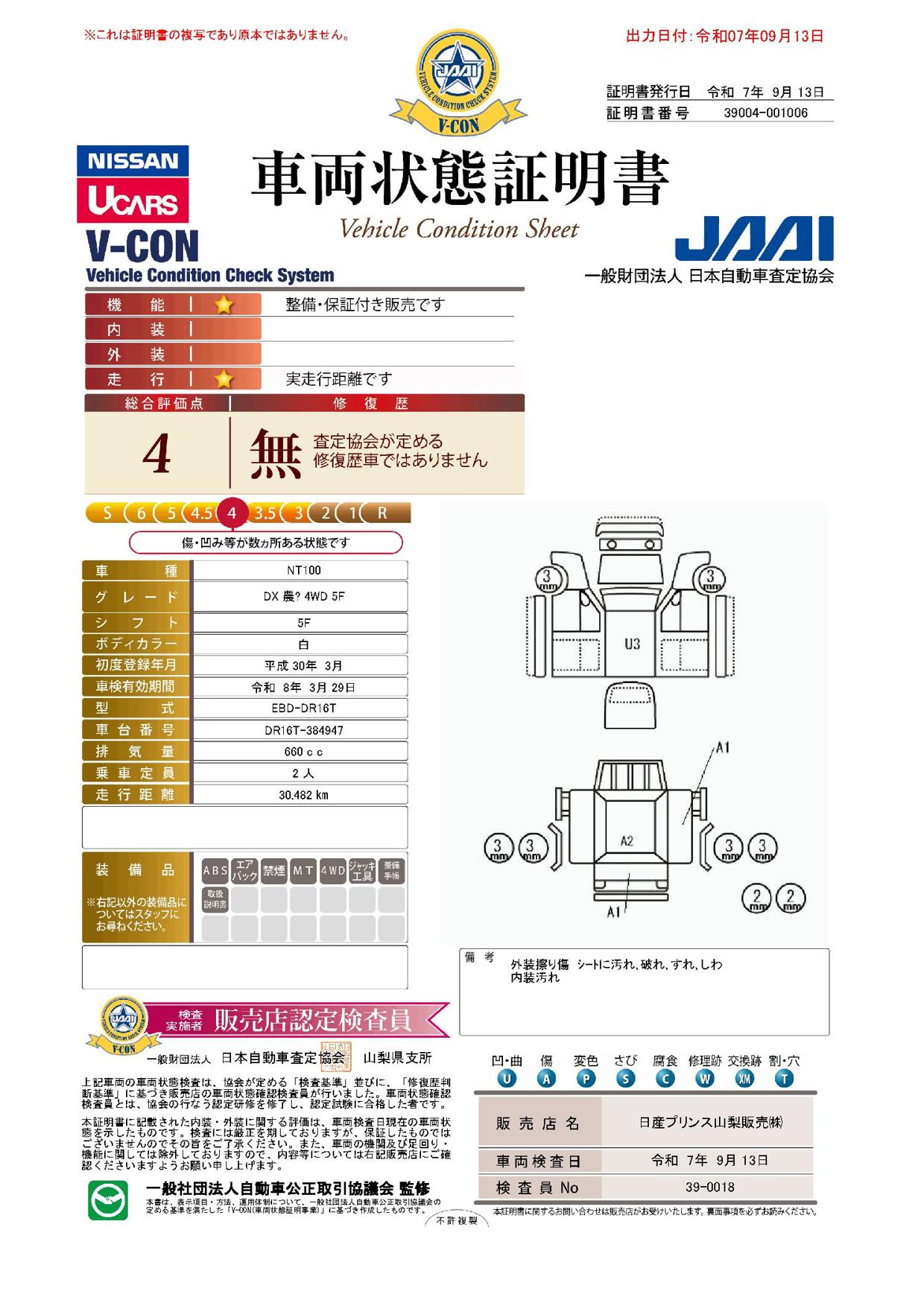 納車時に定期点検整備(費用は車両価格に含まれます。)