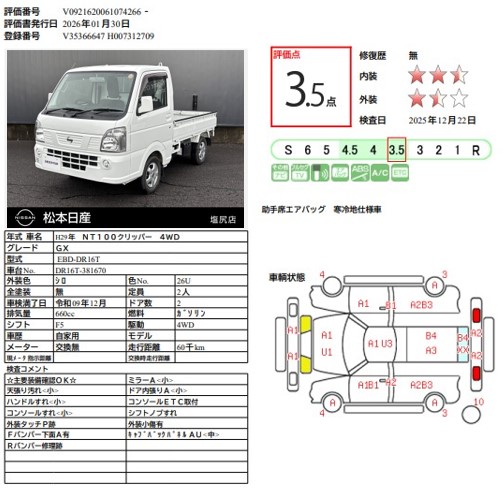NT100クリッパー 660cc 660 GX 4WD 最大積載量350Kg リモコンキー