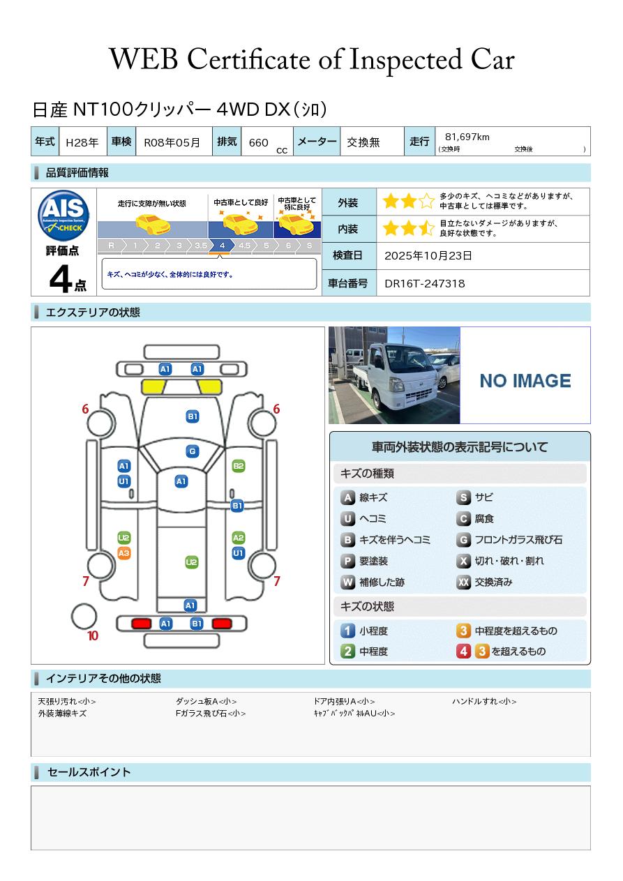 日産大阪UCARS枚方『日産中古車ワイド保証12ケ月』:延長保証もございます。4WD・5速マニュアル車・エアコン・パワーステアリング・三方開:『日産中古車ワイド保証12ケ月』
